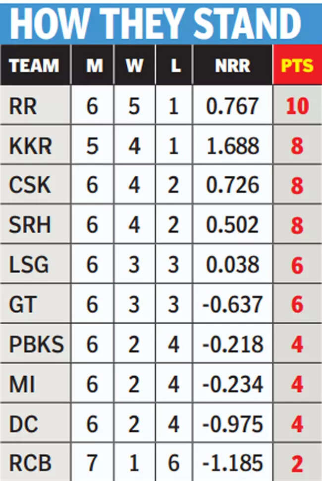 Although their openers Yashasvi Jaiswal and Jos Butler have still not got going, RR have been able to put up high scores, since they bat deep with Riyan Parag, the second highest run-scorer (284) in this IPL, being a revelation.