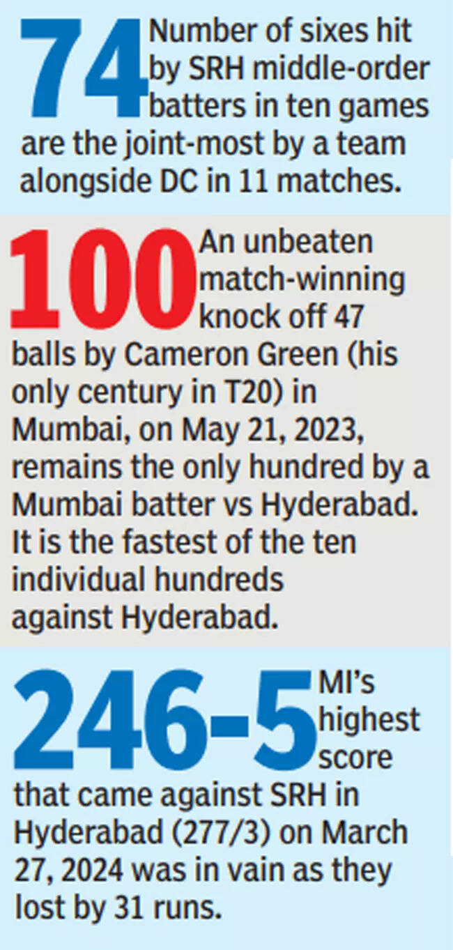 Led astutely by Pat Cummins, they possess the tournament's most dangerous batting line-up in openers Travis Head and Abhishek Sharma, followed by Heinrich Klaasen and Nitish Kumar Reddy (smashed 76 not out off just 42 balls in the last match). Head's contest with Bumrah has the potential to light up this game. Between them, Klaasen (31) and Abhishek (28) have smashed as many as 59 sixes in IPL-2024 so far-the maximum by anyone in the competition so far.