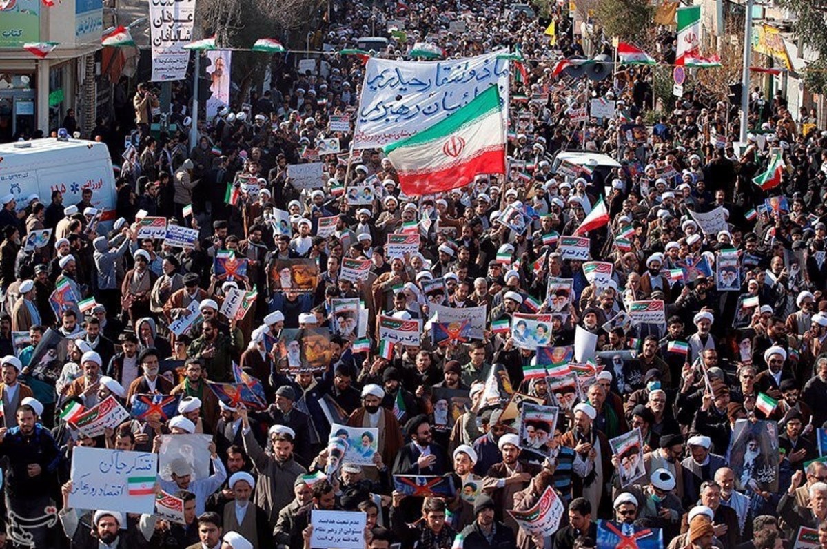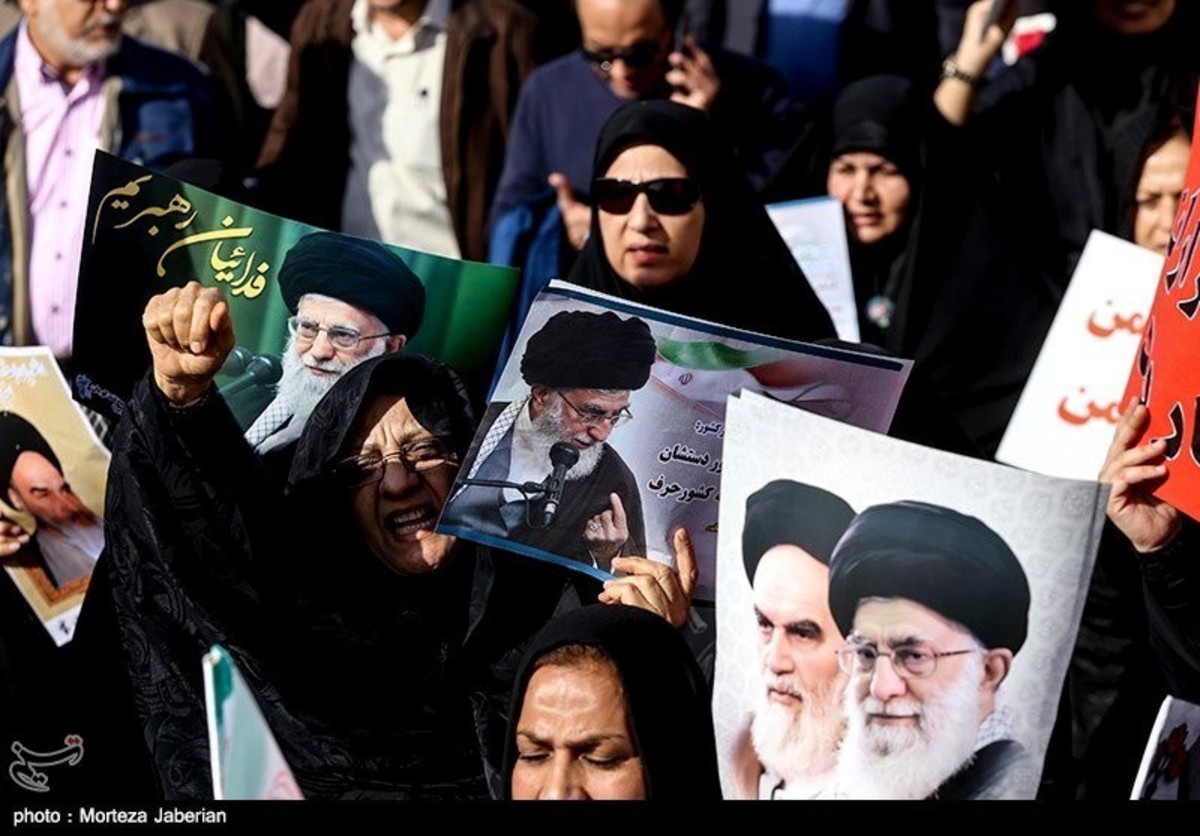 Pro-government marchers chanted: "The blood in our veins is a gift to our leader (Khamenei)," and: "We will not leave our leader alone." They accused the United States, Israel and Britain of inciting protests, shouting, "The seditionist rioters should be executed!"