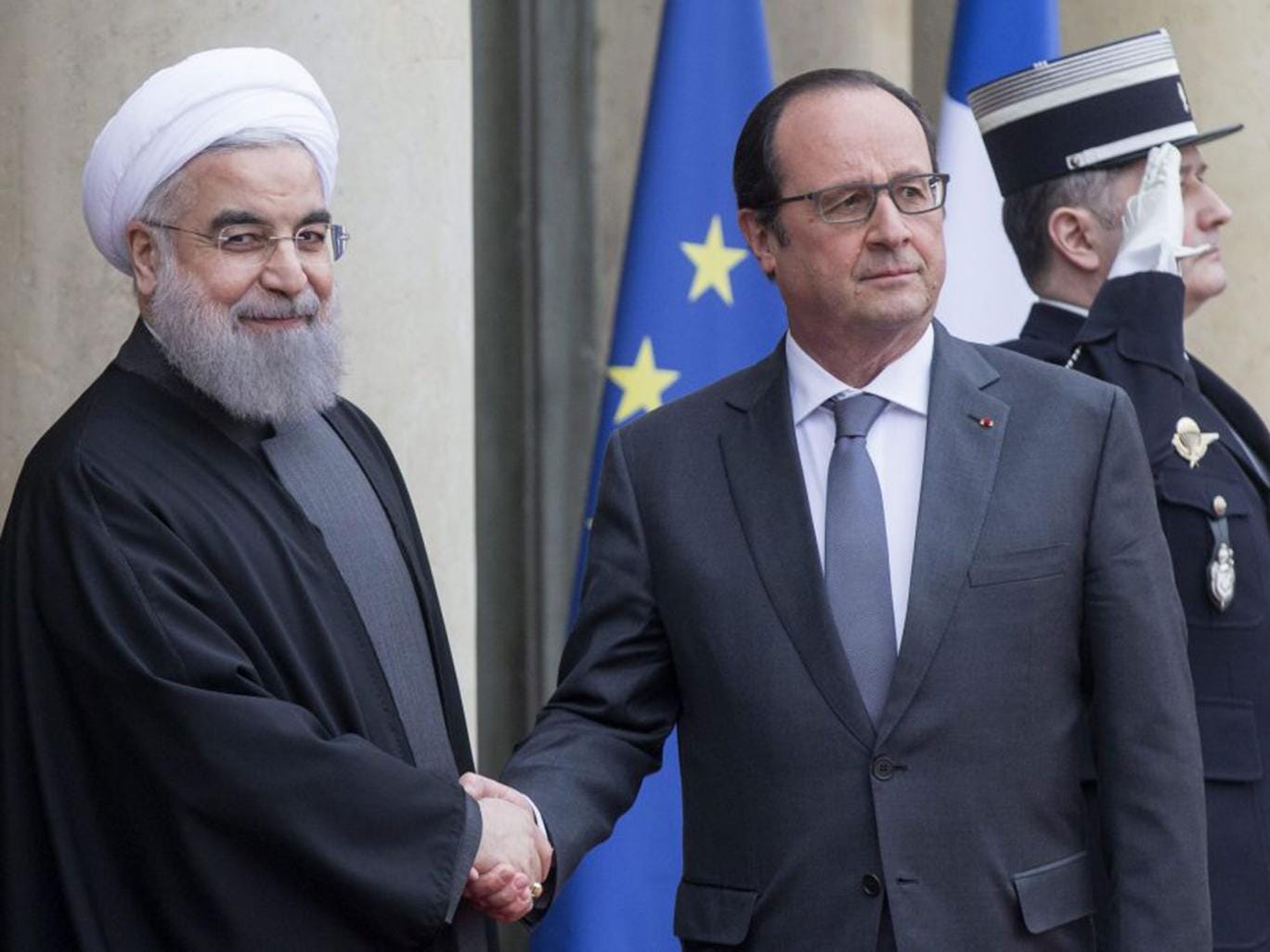 Unusually for an official visit by another head of state, Mr Rouhani – the first Iranian leader to visit Paris since 1999 – was not invited to lunch or dinner at the Elysée Palace. Tehran said that Mr Rouhani could not attend a meal if wine was served. France insisted “no wine, no meal”.