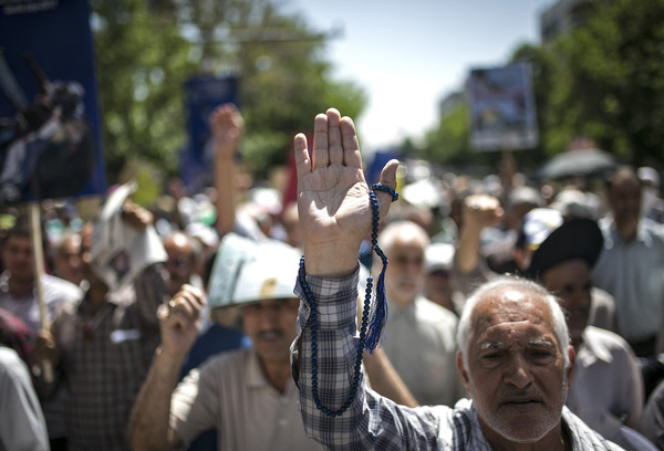 The annual protests held on the last Friday of the fasting month of Ramadan are organized by Iran's hard-line Shiite Muslim establishment as a show of support for the Palestinian people. Iran does not recognize Israel and backs militant groups, including Hamas and Hezbollah, that oppose the Jewish state.