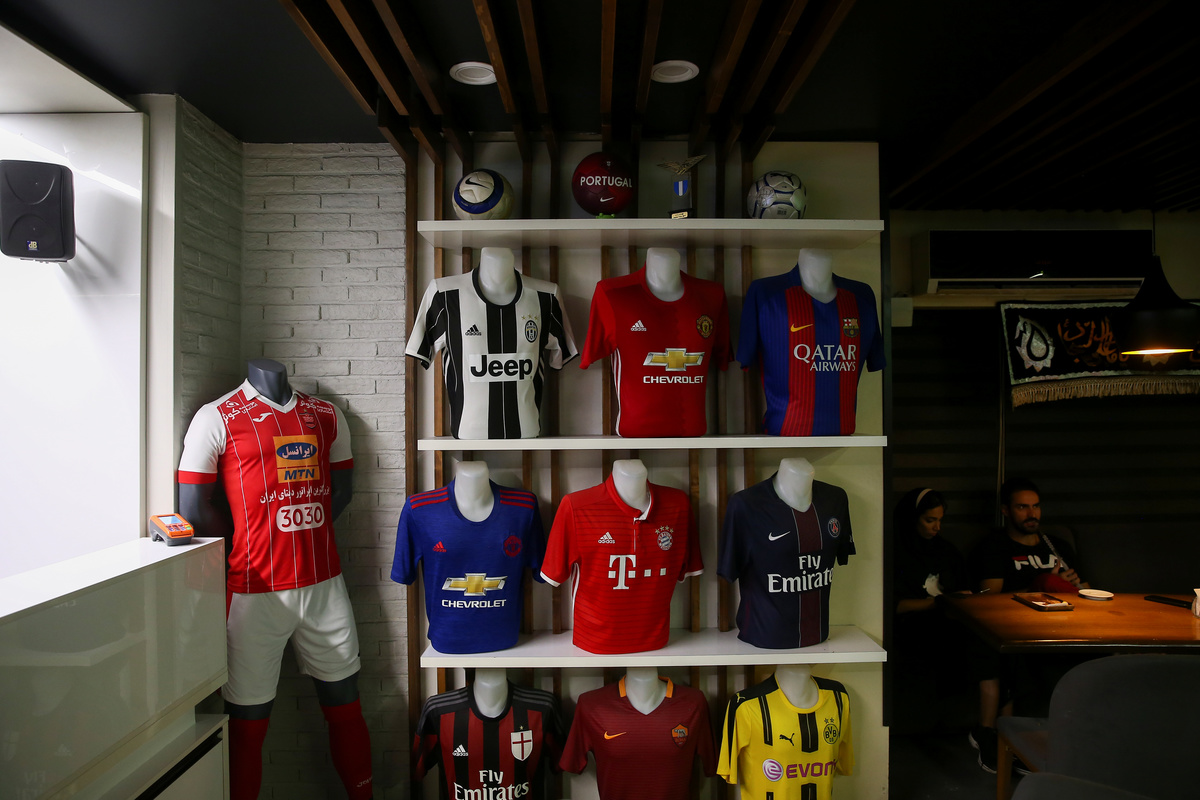 Sport T-shirts are seen at a cafe in Tehran, Iran September 15, 2019. Picture taken September 15, 2019. Nazanin Tabatabaee/WANA (West Asia News Agency) via REUTERS ATTENTION EDITORS - THIS IMAGE HAS BEEN SUPPLIED BY A THIRD PARTY.