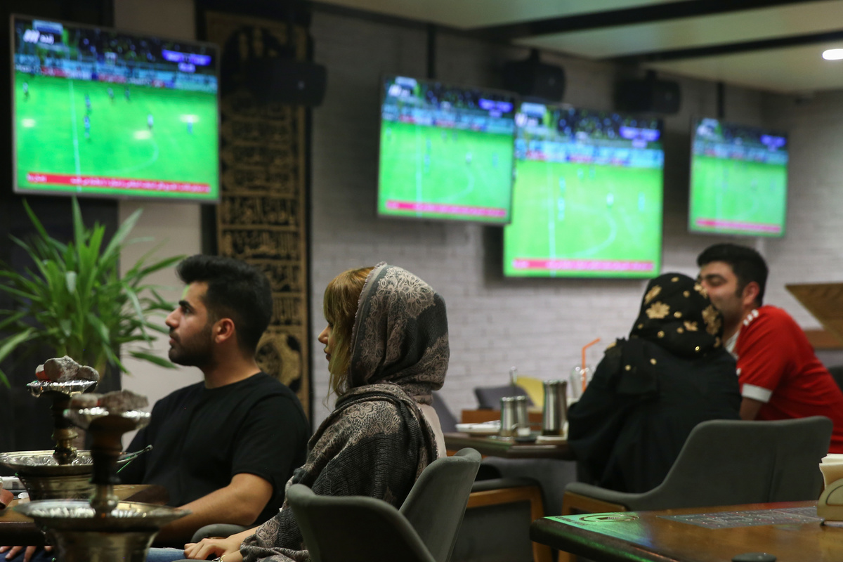 "They do not let us inside the stadiums. But we were so good like this today, inside the shopping centre," said Atieh, who was among a group of men and women watching a soccer game at a cafe in Tehran. "Men did not say anything improper at all, and we were all together, all fine, watching the match."