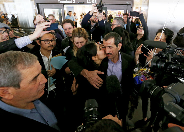Ali Vayeghan was aboard a flight from Qatar that landed at Los Angeles International Airport at 12:40 p.m. PST, said family members and attorneys who took up his case. A roar of approval went up from immigration attorneys and relatives who had gathered at LAX's Terminal 2 when it was announced that Vayeghan's plane had landed.