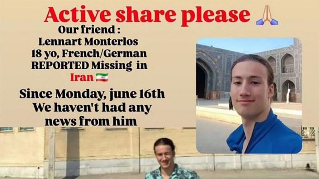 Monterlos, 19, was arrested on 16 June in the southern city of Bandar Abbas on the third day of the war between Iran and Israel.