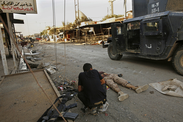 Earlier this year, Human Rights Watch documented abuses by the Shiite Badr Brigades and Hezbollah Brigades during the Fallujah offensive, when men fleeing the city disappeared, were tortured and killed. Both militias were seen by the Times participating in the Mosul offensive southwest of the city.