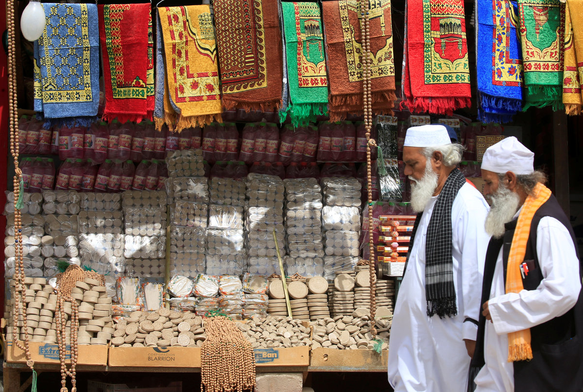 Pilgrims - who press the palm-sixed tablets to their foreheads when prostrated in prayer - buy the turbah from a small band of local craftspeople and dealers.