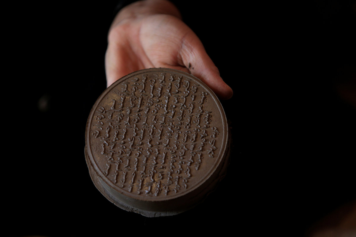 She makes up to 50 engraved tablets a day, and sells them for 250-500 dinars to wholesalers.