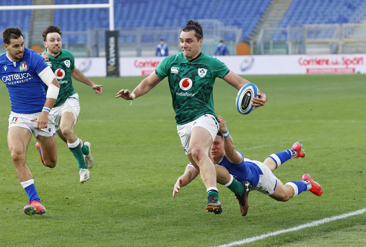 Ringrose burst through the Italian defence to score the game’s first try before turning creator for their second, neatly offloading to fullback Keenan, who sprinted over the line.