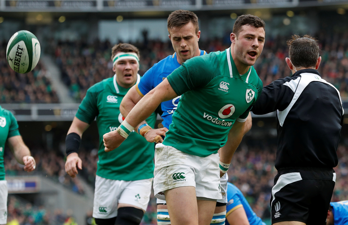 Rugby Union - Six Nations Championship - Ireland vs Italy - Aviva Stadium, Dublin, Republic of Ireland - February 10, 2018 Ireland’s Robbie Henshaw celebrates scoring their first try REUTERS/Russell Cheyne