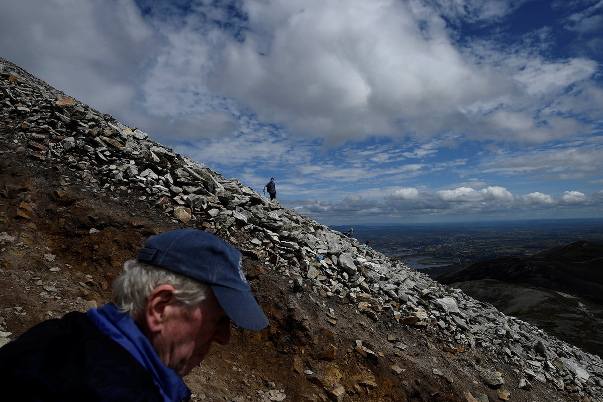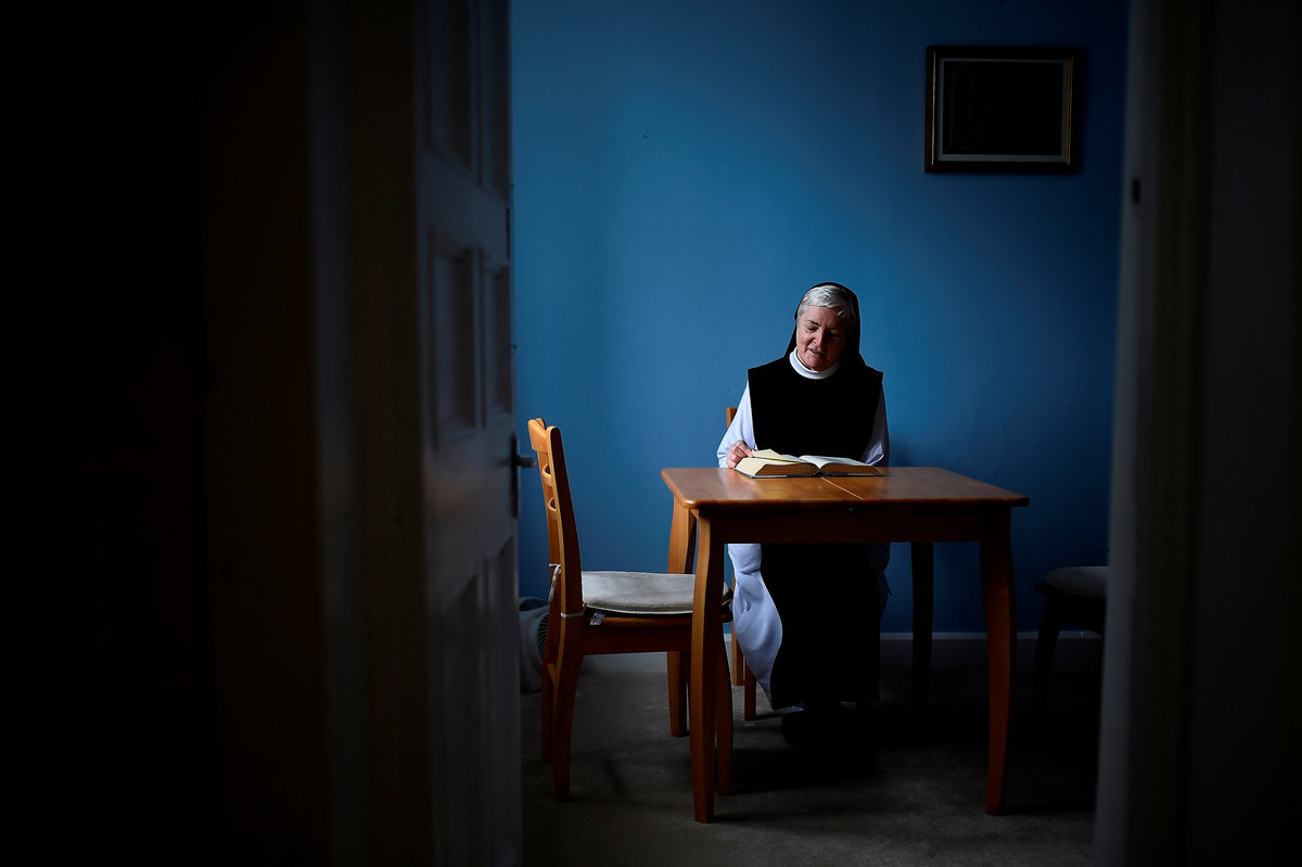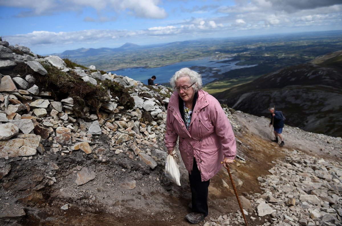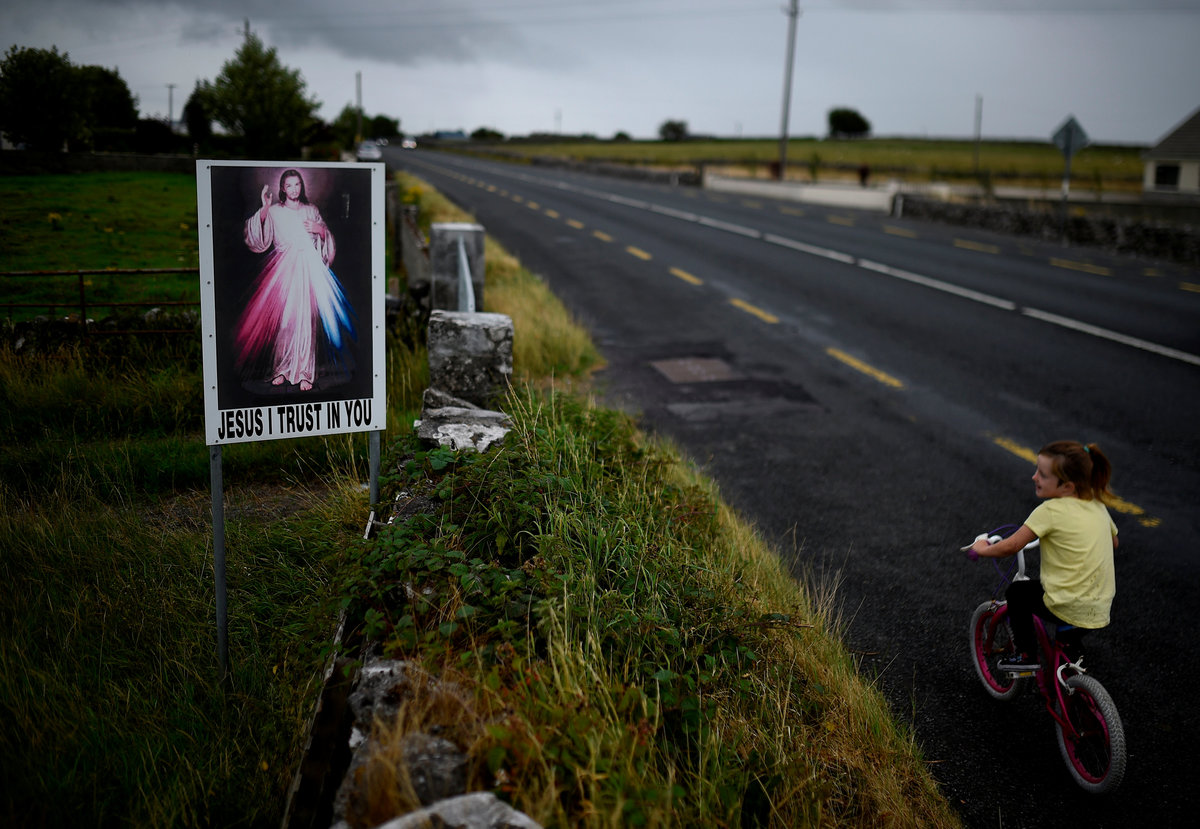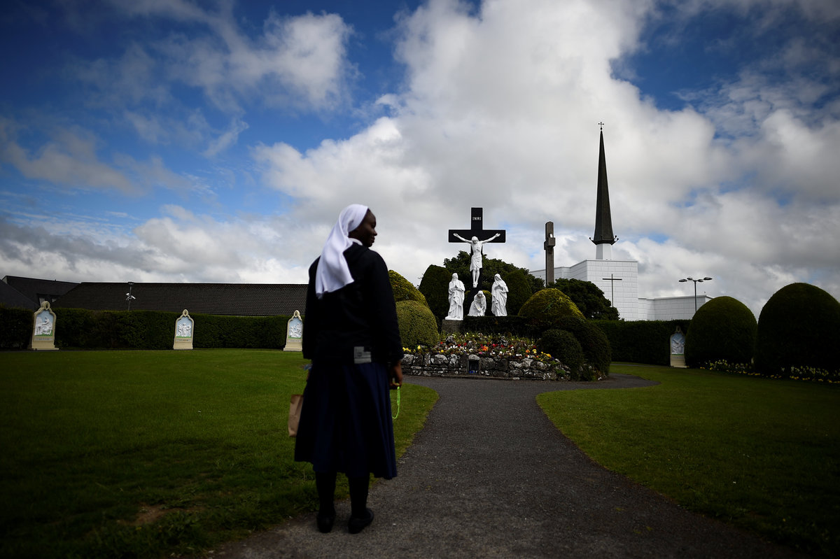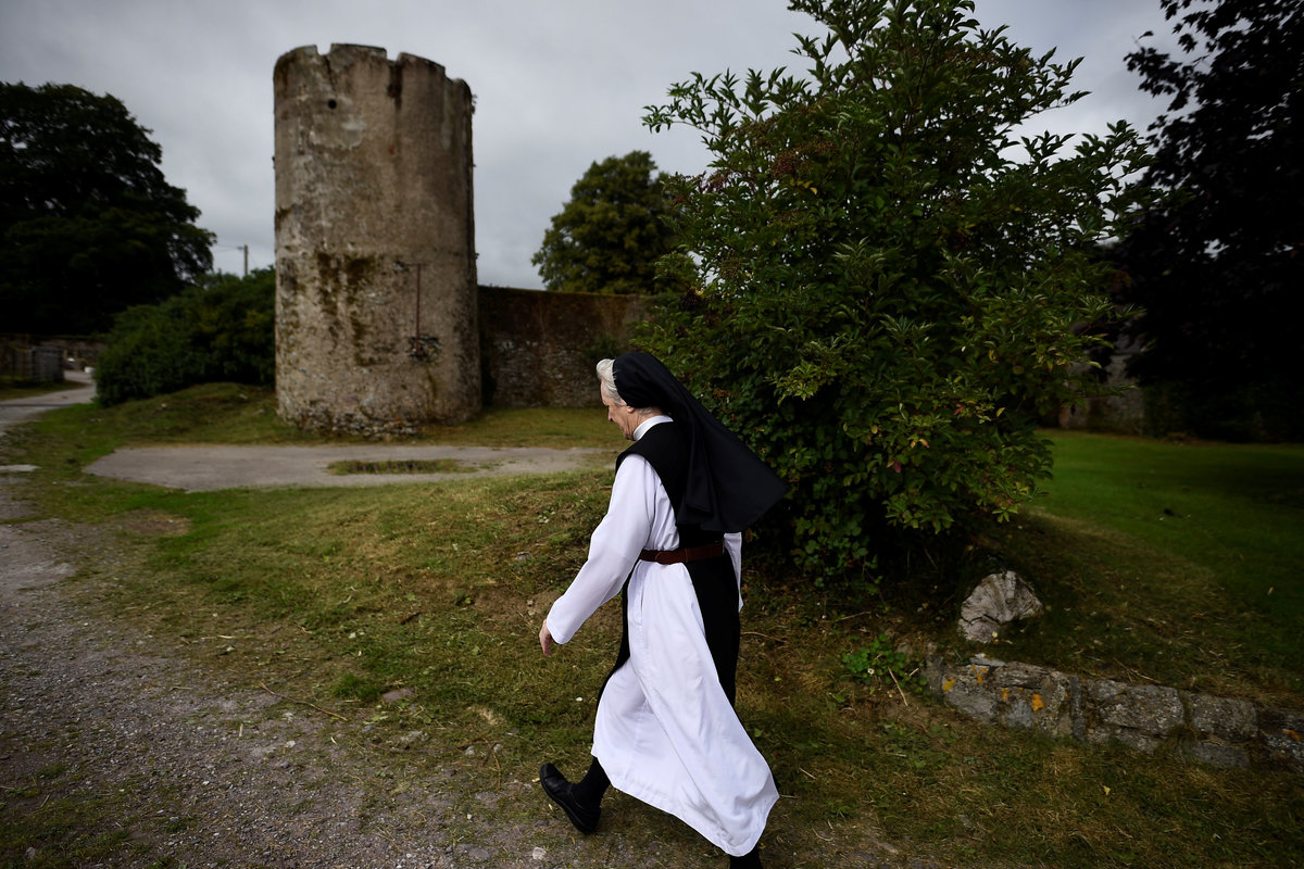 Joe Towell, 68, sits with his mother who lives with him at his home in Dublin, Ireland, July 18, 2018. REUTERS/Clodagh Kilcoyne The stage where Pope Frances will lead Mass for over half a million people is under construction at the Phoenix Park in Dublin, Ireland, August 13, 2018. REUTERS/Clodagh Kilcoyne Heart-shaped gravestones of boys who died in a Christian Brothers' industrial school lie in a graveyard in Letterfrack, Ireland, July 24, 2018. REUTERS/Clodagh Kilcoyne A statue of Pope Francis stands in a shop window in the National Marian Shrine town of Knock, Ireland, July 23, 2018. REUTERS/Clodagh Kilcoyne Brendan O'Connor who lives beside Phoenix Park, sits in his yard in Dublin, Ireland, July 18, 2018. REUTERS/Clodagh Kilcoyne A station of the cross is partly hidden by undergrowth at a roadside in the Connemara village of Letterfrack, Ireland, July 24, 2018. REUTERS/Clodagh Kilcoyne Pope Francis bunting decorates a street in the city centre of Dublin, Ireland, August 13, 2018. REUTERS/Clodagh Kilcoyne A religious grotto featuring a statue of the Virgin Mary holding a Pope Francis prayer card and several sets of rosary beads stands on the roadside near the county Mayo town of Claremorris, Ireland, July 23, 2018. REUTERS/Clodagh Kilcoyne Pilgrims attend Mass at the summit of Croagh Patrick holy mountain during an annual Catholic pilgrimage near Lecanvey, Ireland, July 29, 2018. REUTERS/Clodagh Kilcoyne A child cycles past a roadside sign reading 'Jesus I trust in you' near Tuam, Ireland, July 23, 2018. REUTERS/Clodagh Kilcoyne Pilgrims circle a statue of St Patrick, praying before beginning to ascend Croagh Patrick holy mountain during an annual Catholic pilgrimage near Lecanvey, Ireland, July 29, 2018. REUTERS/Clodagh Kilcoyne A nun stands in front of a scene of the crucifix of Jesus in the Marian Shrine town of Knock, Ireland, July 23, 2018. REUTERS/Clodagh Kilcoyne Pilgrims ascend and descend Croagh Patrick holy mountain during an annual Catholic pilgrimage near Lecanvey, Ireland, July 29, 2018. REUTERS/Clodagh Kilcoyne Pilgrims ascend and descend Croagh Patrick holy mountain during an annual Catholic pilgrimage near Lecanvey, Ireland, July 29, 2018. REUTERS/Clodagh Kilcoyne A pilgrim descends Croagh Patrick holy mountain barefoot during an annual Catholic pilgrimage near Lecanvey, Ireland, July 29, 2018. REUTERS/Clodagh Kilcoyne A young pilgrim reads on Croagh Patrick holy mountain during an annual Catholic pilgrimage near Lecanvey, Ireland, July 29, 2018. REUTERS/Clodagh Pilgrims attend Mass at the summit of Croagh Patrick holy mountain during an annual Catholic pilgrimage near Lecanvey, Ireland, July 29, 2018. REUTERS/Clodagh Kilcoyne Pilgrims ascend and descend Croagh Patrick holy mountain during an annual Catholic pilgrimage near Lecanvey, Ireland, July 29, 2018. REUTERS/Clodagh Kilcoyne Sister Angela Finegan looks out of the church window at St Mary's Abbey, a Cistercian monastery that is an enclosed contemplative order of nuns in Glencairn, Ireland, August 18, 2018. REUTERS/Clodagh Kilcoyne Sister Angela Finegan mops the church floor at St Mary's Abbey, a Cistercian monastery that is an enclosed contemplative order of nuns in Glencairn, Ireland, August 18, 2018. REUTERS/Clodagh Kilcoyne A religious grotto that lights up at night and is also a traffic roundabout, stands in the city centre in Dublin, Ireland, August 14, 2018. REUTERS/Clodagh Kilcoyne Sister Marie Fahy walks through the farm in St Mary's Abbey, a Cistercian monastery that is an enclosed contemplative order of nuns in Glencairn, Ireland, August 18, 2018. REUTERS/Clodagh Kilcoyne Names spelled out in stones are laid out on the side of Croagh Patrick holy mountain during an annual Catholic pilgrimage near Lecanvey, Ireland, July 29, 2018. REUTERS/Clodagh Kilcoyne A statue of the Virgin Mary stands in O'Devaney Gardens beside Phoenix Park in Dublin, Ireland, July 18, 2018. REUTERS/Clodagh Kilcoyne Pilgrims ascend and descend Croagh Patrick holy mountain during an annual Catholic pilgrimage near Lecanvey, Ireland, July 29, 2018. REUTERS/Clodagh KilcoyneSister Kathleen carries a pot of tea at St Mary's Abbey, a Cistercian monastery that is an enclosed contemplative order of nuns in Glencairn, Ireland, August 18, 2018. REUTERS/Clodagh Kilcoyne