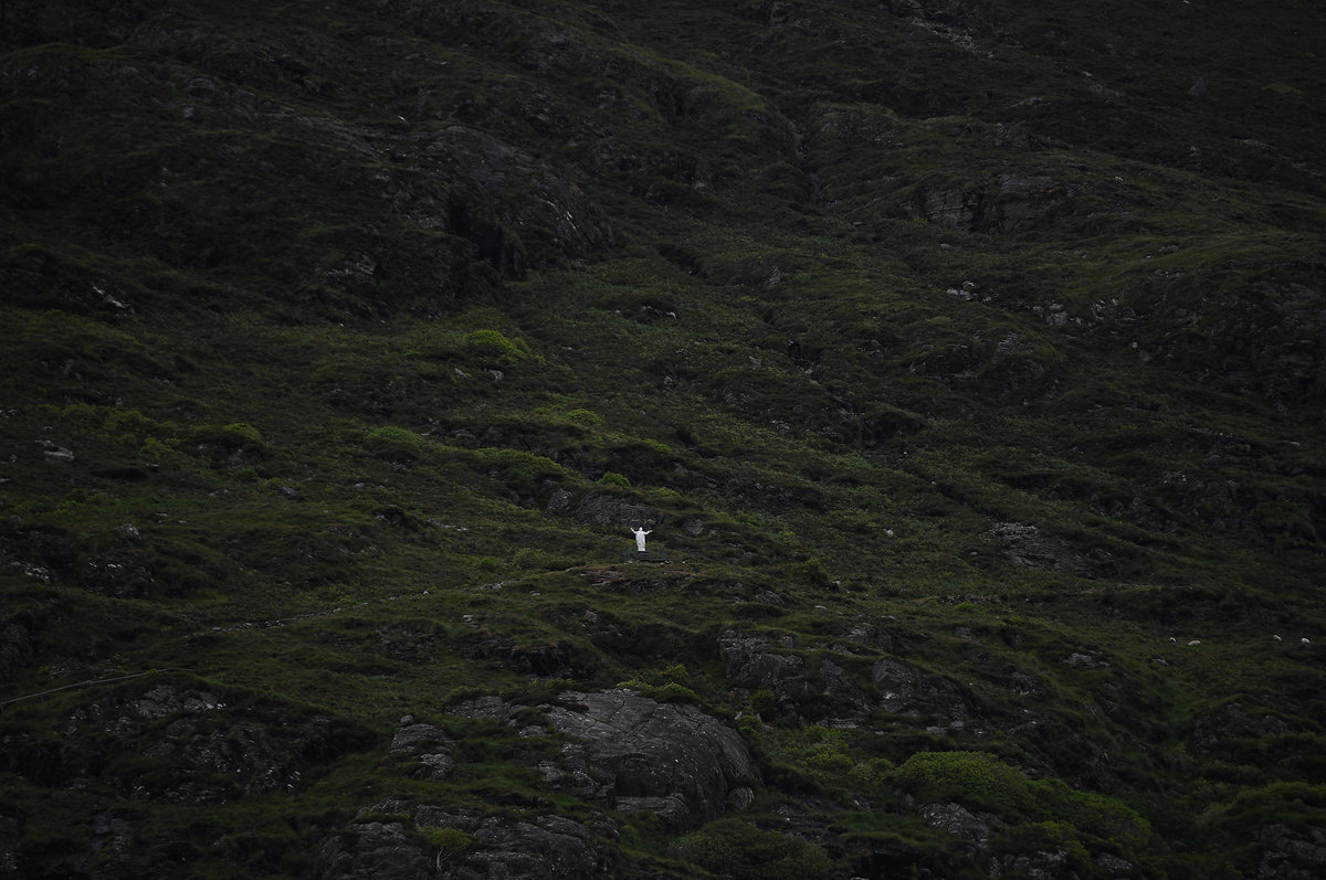 A Sacred Heart statue stands in the mountains in Kylemore, Ireland, July 24, 2018. REUTERS/Clodagh Kilcoyne