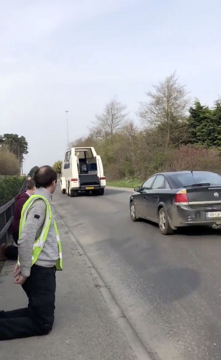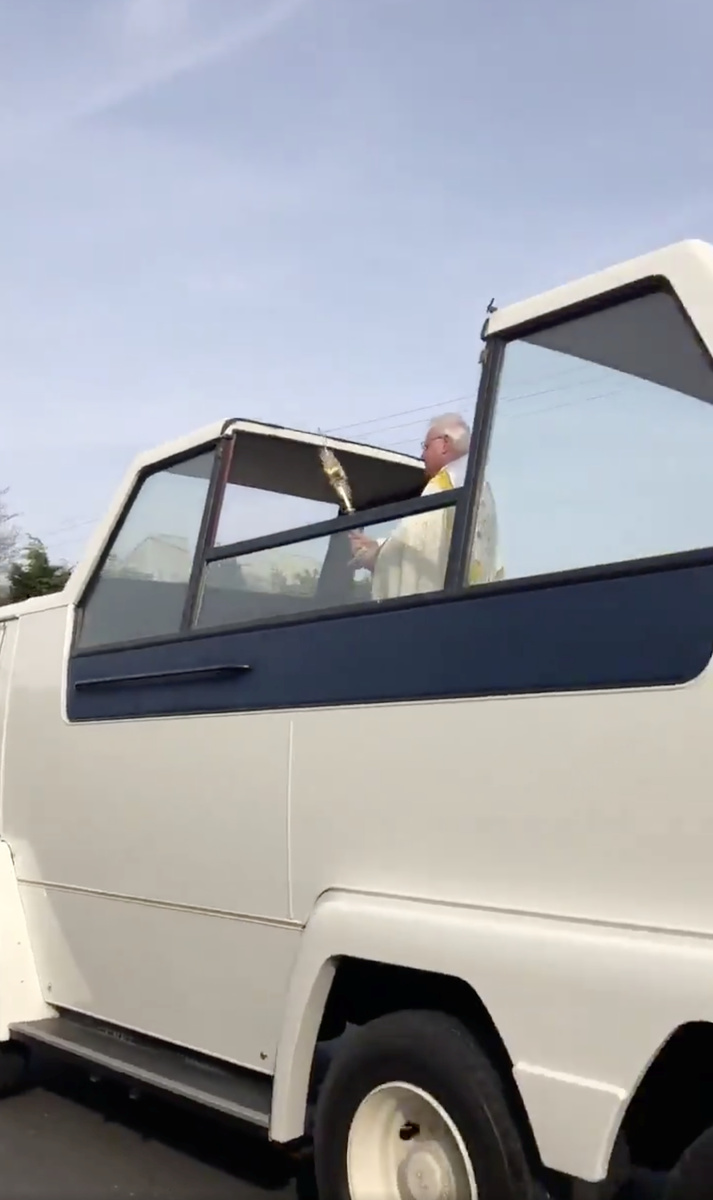 An Irish priest refusing to let the coronavirus lockdown keep him from his parishioners came up with an innovative way to spread his Holy Thursday blessing - aboard a vintage 'popemobile.'