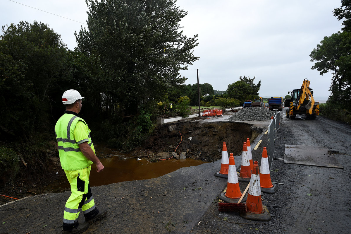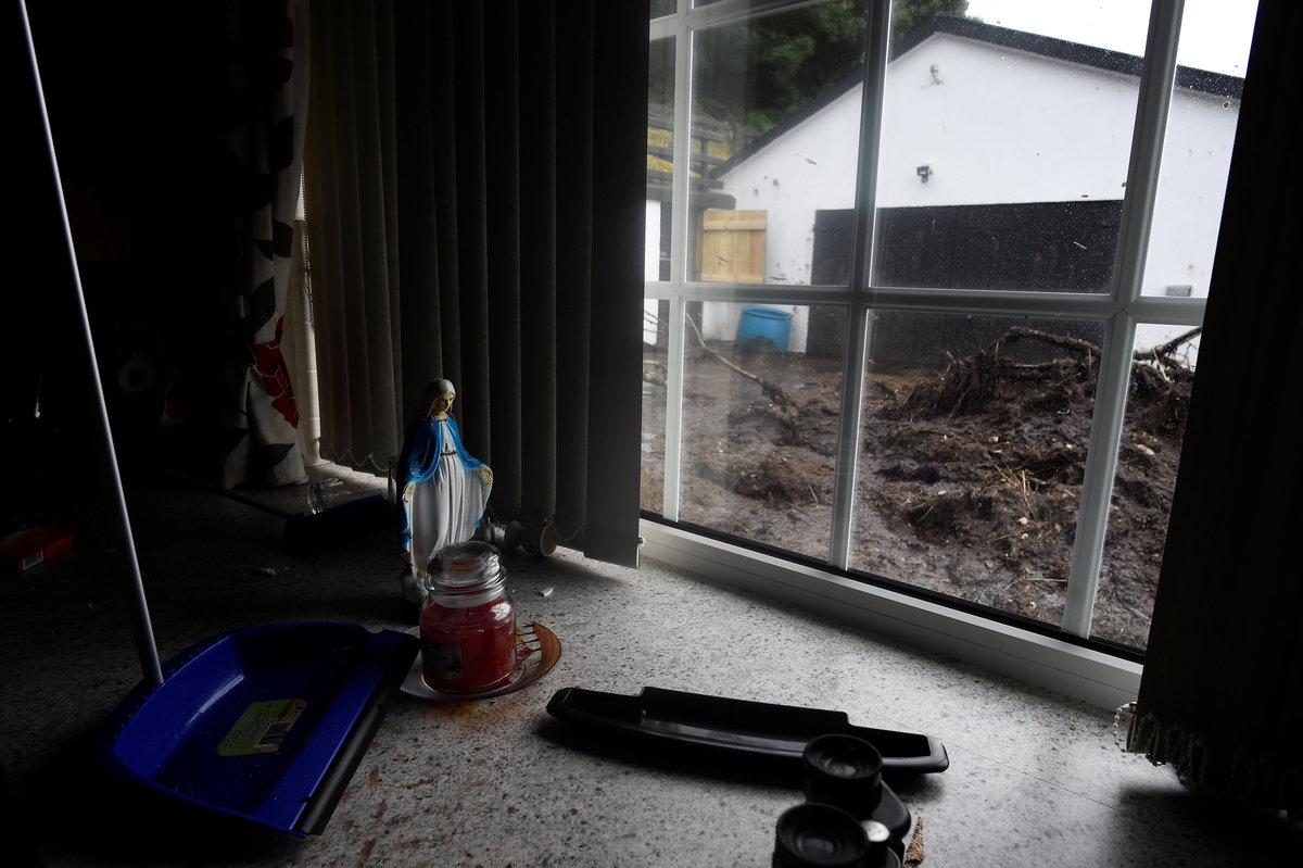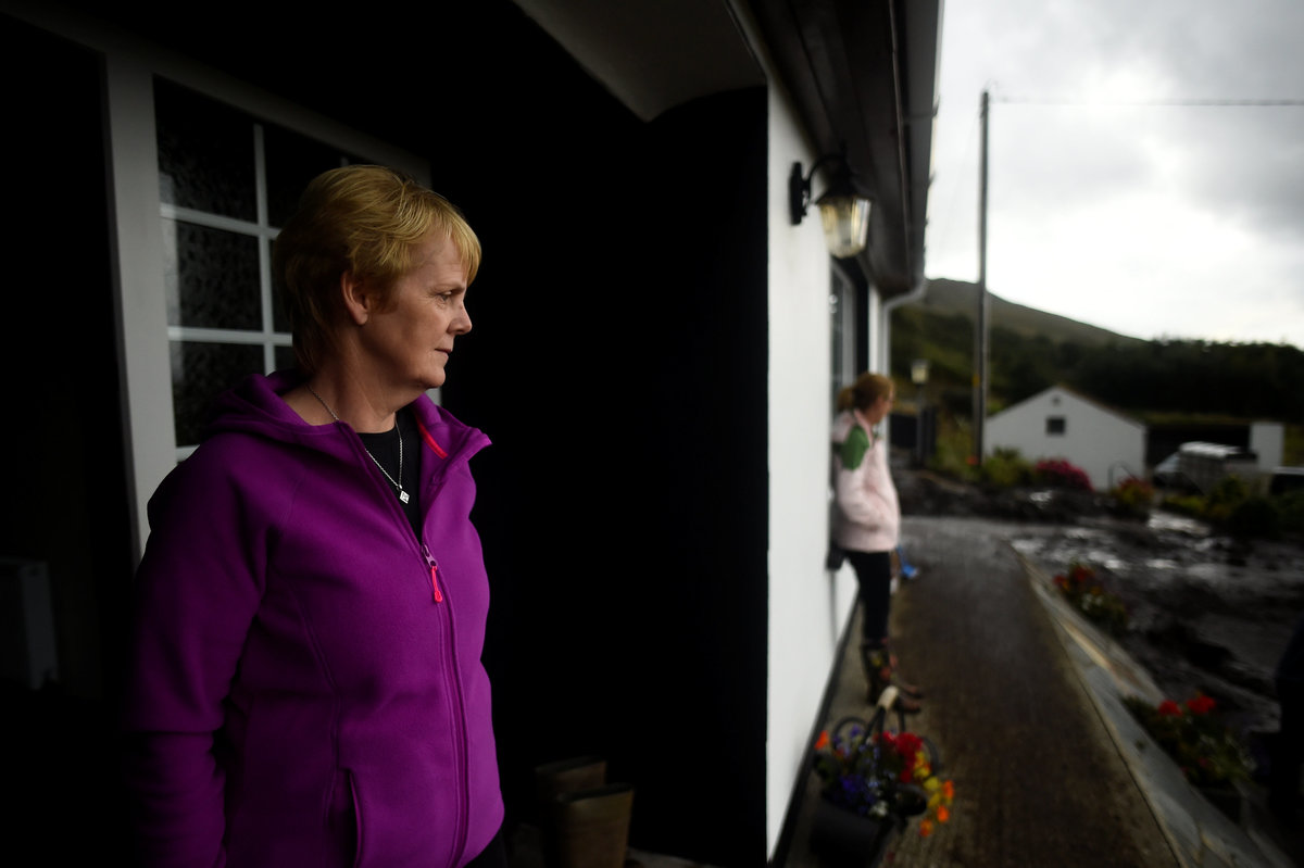 Mud is seen through a window in Bernie Kearney's home, after a landslide carrying a boulder and her car came through the house, during torrential rains in Urris, County Donegal, Ireland August 24, 2017. REUTERS/Clodagh KilcoyneThe roof of Bernie Kearney's home is seen, after a landslide carrying a boulder and her car came through the house, during torrential rains in Urris, County Donegal, Ireland August 24, 2017. REUTERS/Clodagh KilcoyneBernie Kearney's bedroom in her destroyed home is seen, after a landslide carrying a boulder and her car came through the house, during torrential rains in Urris, County Donegal, Ireland August 24, 2017. REUTERS/Clodagh KilcoyneThe kitchen of Bernie Kearney's destroyed home is seen, after a landslide carrying a boulder and her car (seen here behind the kitchen window) came through the house, during torrential rains in Urris, County Donegal, Ireland August 24, 2017. REUTERS/Clodagh KilcoyneThe kitchen of Bernie Kearney's destroyed home is seen, after a landslide carrying a boulder and her car (seen at the kitchen window) came through the house, during torrential rains in Urris, County Donegal, Ireland August 24, 2017. REUTERS/Clodagh KilcoyneBernie Kearney's bedroom in her destroyed home is seen, after a landslide carrying a boulder and her car came through the house, during torrential rains in Urris, County Donegal, Ireland August 24, 2017. REUTERS/Clodagh KilcoyneMud partially fills the window view in a room in Bernie Kearney's destroyed home, after a landslide carrying a boulder and her car came through the house, during torrential rains in Urris, County Donegal, Ireland August 24, 2017. REUTERS/Clodagh KilcoyneMud seeps from the doorway of a room in Bernie Kearney's destroyed home, after a landslide carrying a boulder and her car came through the house, during torrential rains in Urris, County Donegal, Ireland August 24, 2017. REUTERS/Clodagh KilcoyneMud is seen outside the window of Bernie Kearney's kitchen at her home, destroyed by a landslide, after torrential rains in Urris, County Donegal, Ireland August 24, 2017. REUTERS/Clodagh KilcoyneA clean up operation is underway after torrential rains washed away a section of main road in Quigley's Point, County Donegal, Ireland August 24, 2017. REUTERS/Clodagh KilcoyneA clean up operation is underway after torrential rains washed away a section of main road in Quigley's Point, County Donegal, Ireland August 24, 2017. REUTERS/Clodagh KilcoyneBernie Kearney, a medical receptionist, poses for a photograph inside her home, which has been destroyed by a landslide of mud after torrential rains in Urris, County Donegal, Ireland August 24, 2017. REUTERS/Clodagh KilcoyneA clean up operation is underway after torrential rains washed away a section of main road in Quigley's Point, County Donegal, Ireland August 24, 2017. REUTERS/Clodagh KilcoyneA clean up operation is underway after torrential rains washed away a section of main road in Quigley's Point, County Donegal, Ireland August 24, 2017. REUTERS/Clodagh KilcoyneA clean up operation is underway after torrential rains washed away a section of main road in Quigley's Point, County Donegal, Ireland August 24, 2017. REUTERS/Clodagh KilcoyneA clean up operation is underway after torrential rains washed away a section of main road in Quigley's Point, County Donegal, Ireland August 24, 2017. REUTERS/Clodagh KilcoyneA clean up operation is underway after torrential rains washed away a section of main road in Quigley's Point, County Donegal, Ireland August 24, 2017. REUTERS/Clodagh KilcoyneOutside mud blocks most of the light entering Bernie Kearney's bathroom, after it was destroyed by a landslide, during torrential rains in Urris, County Donegal, Ireland August 24, 2017. REUTERS/Clodagh KilcoyneThe ice cream and fruit bowl is seen, which Bernie Kearney was eating when a landslide, carrying a giant boulder and her car, came through the kitchen window, during torrential rains in Urris, County Donegal, Ireland August 24, 2017. REUTERS/Clodagh Kilcoyne
