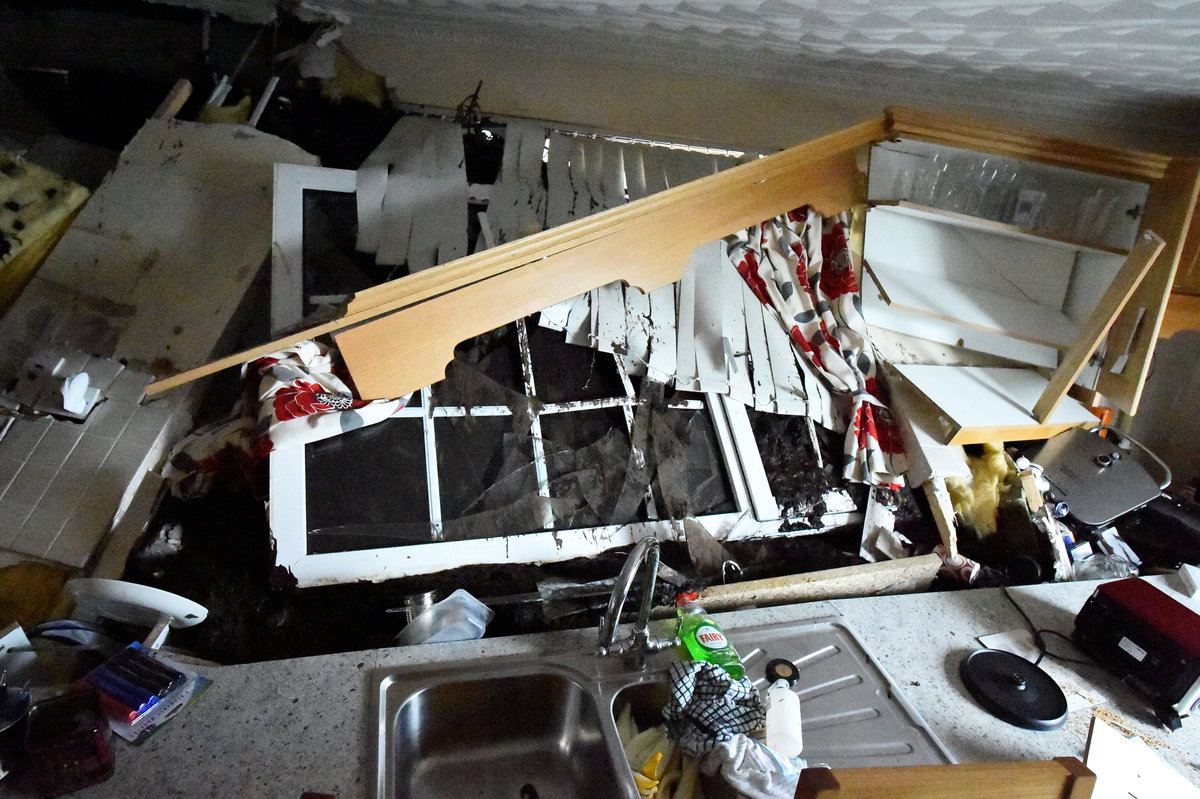 Kearney said in a telephone interview that she heard a loud bang and "the kitchen tumbled in around me."