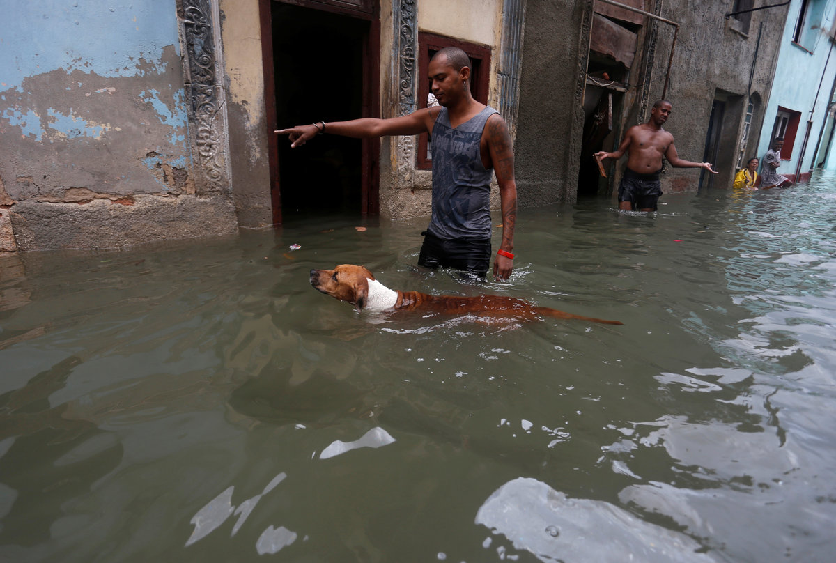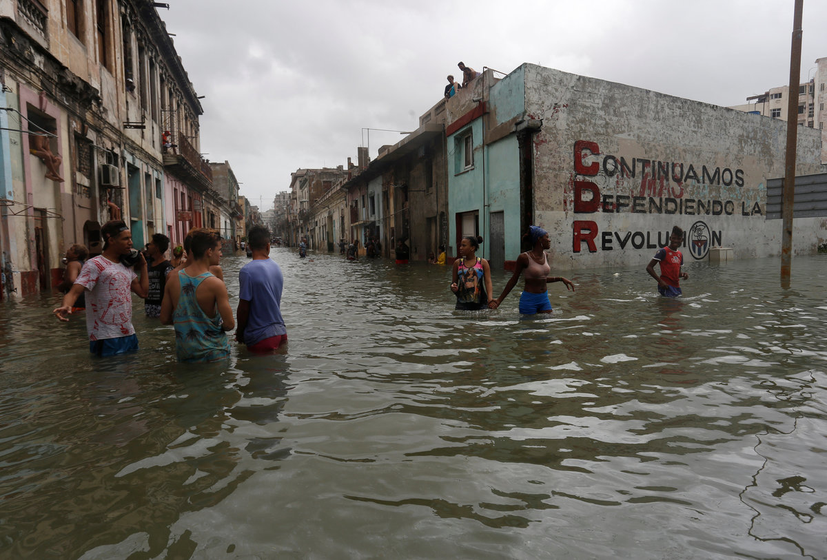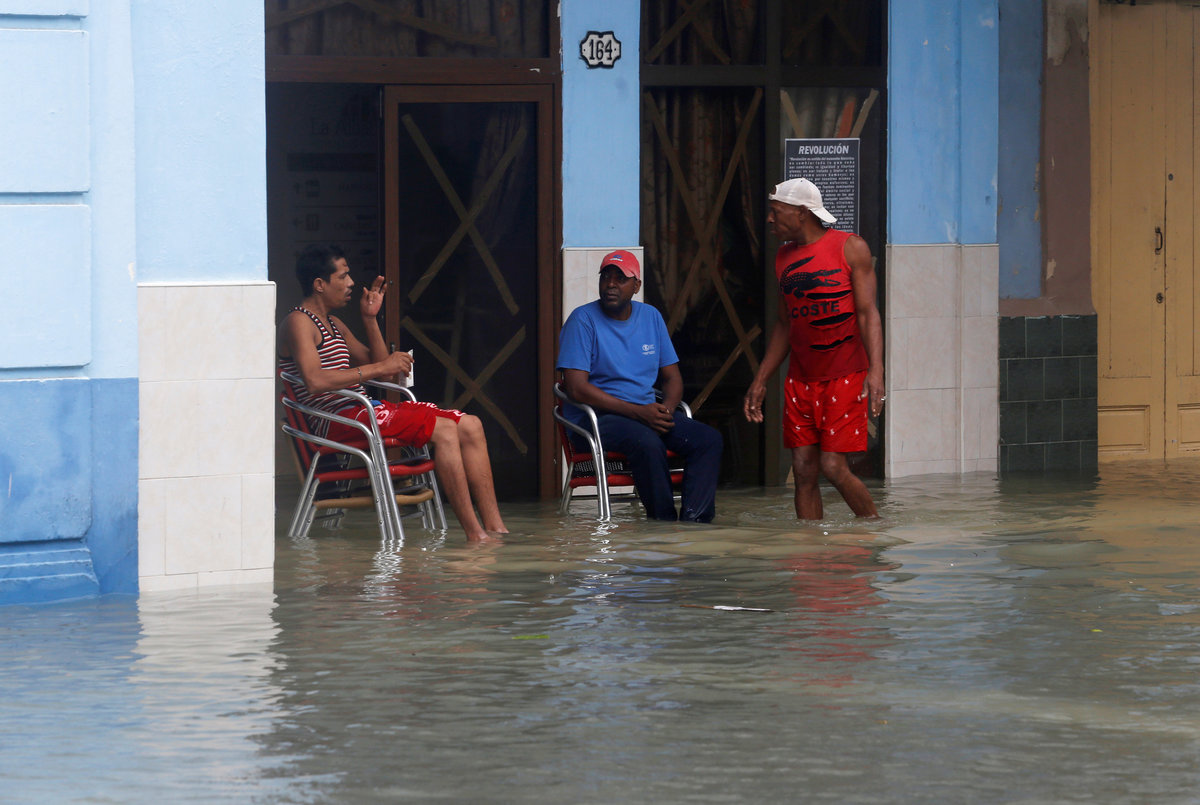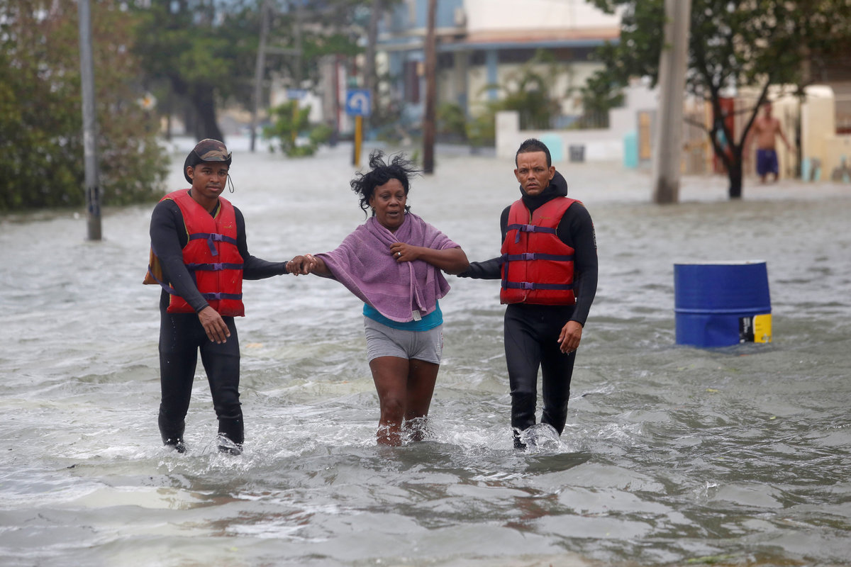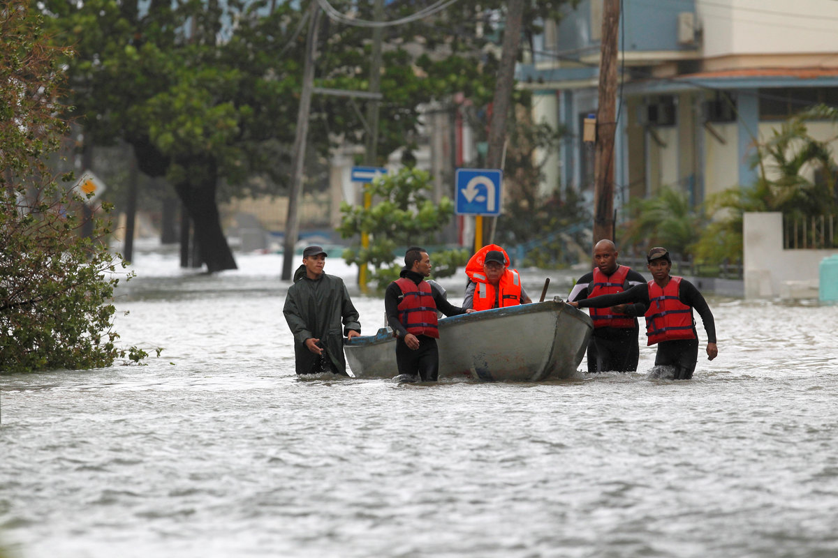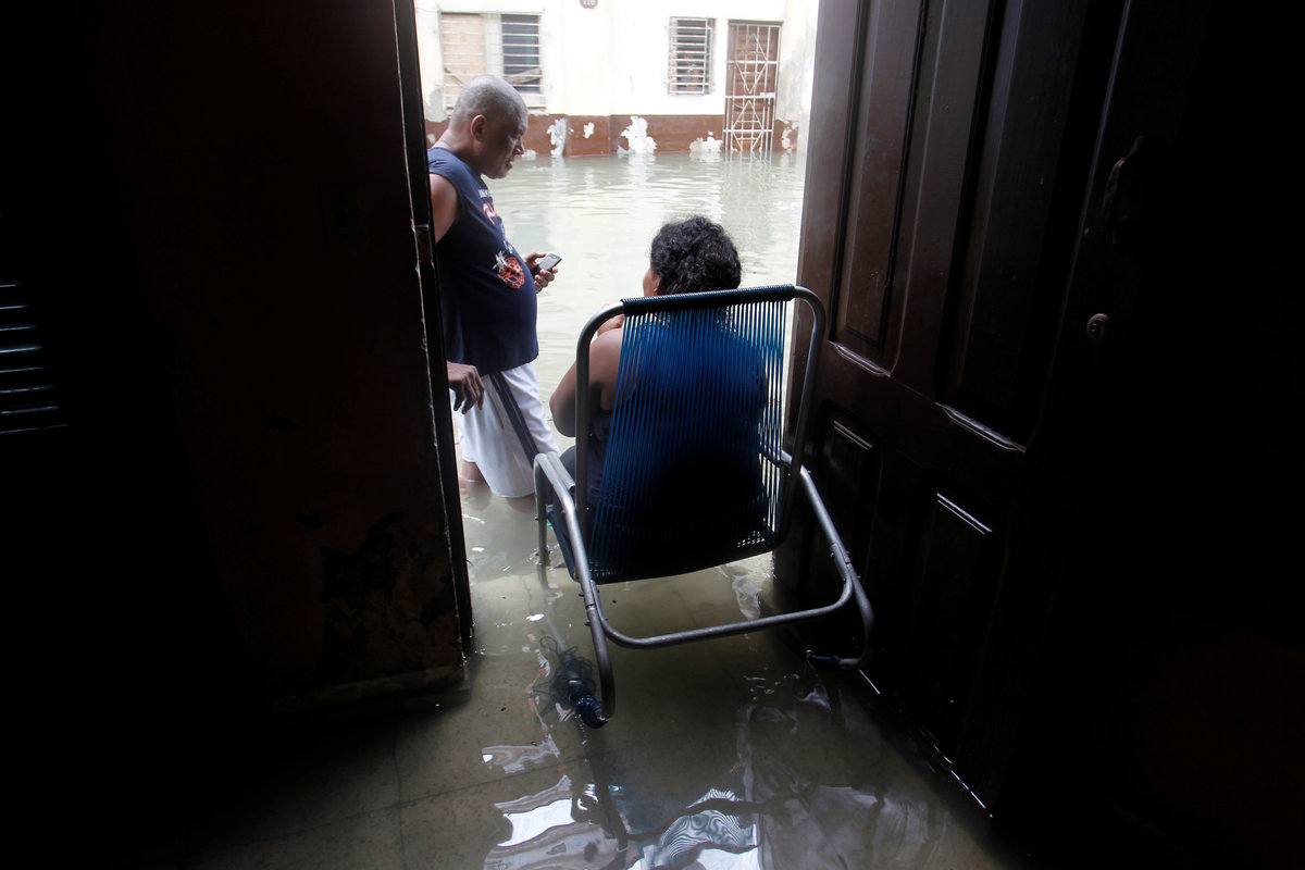 Sea-front hotels were evacuated in Havana and relief workers spent the night rescuing people from homes in the city center as the sea penetrated to historic depths in the flood-prone area.