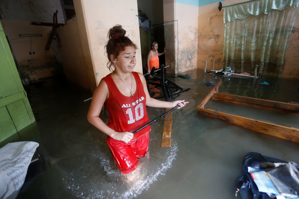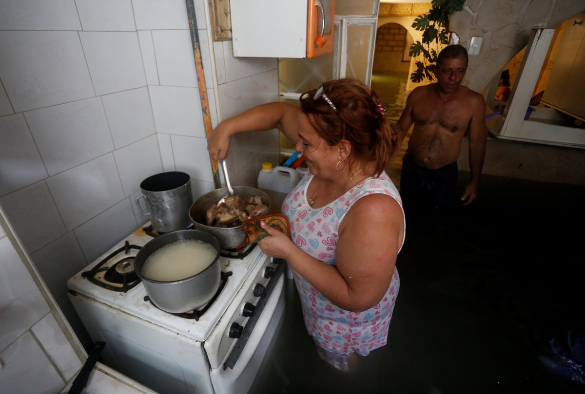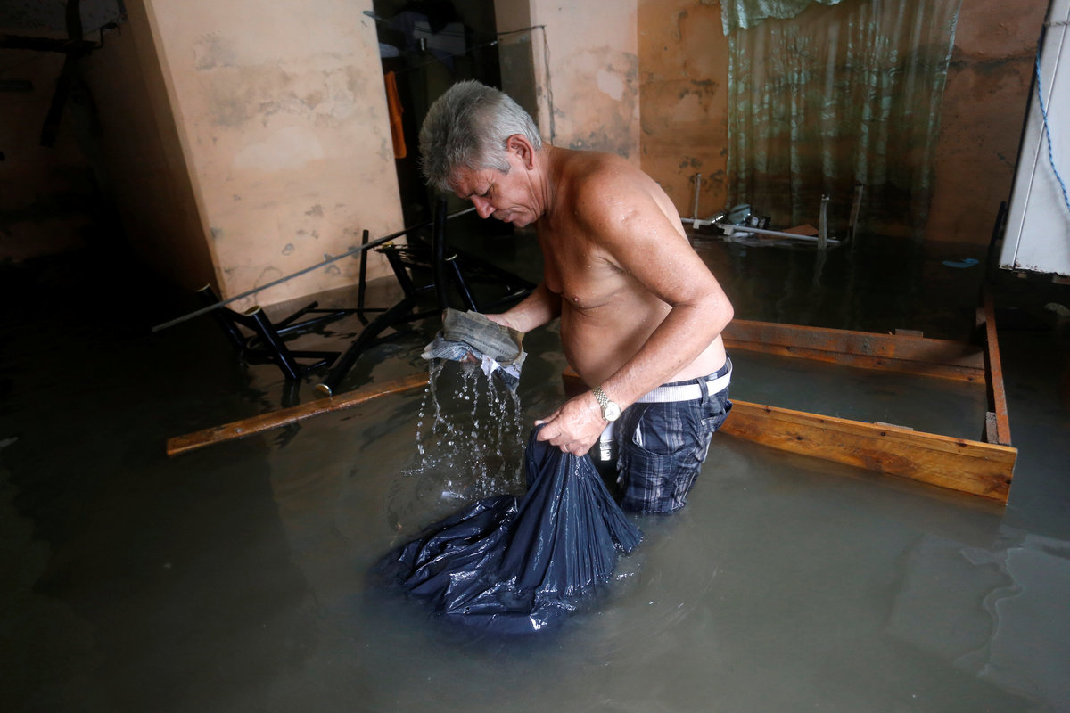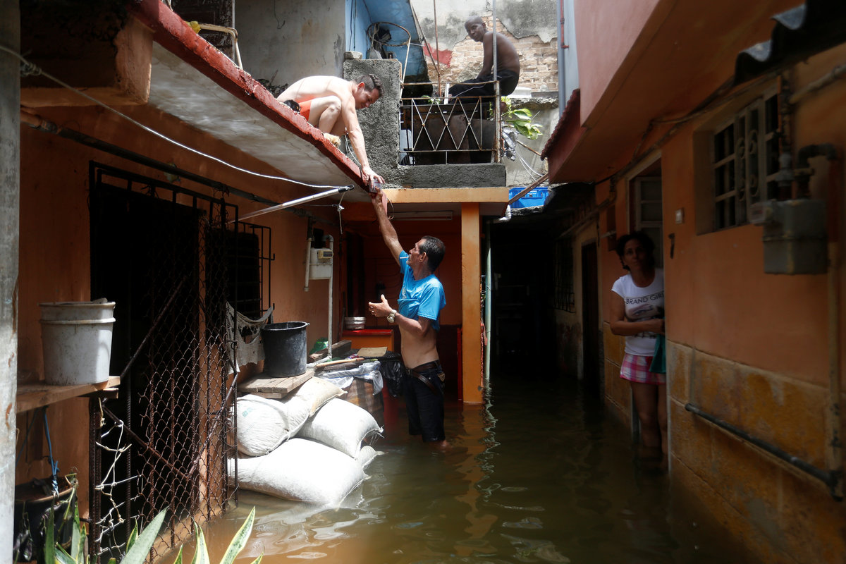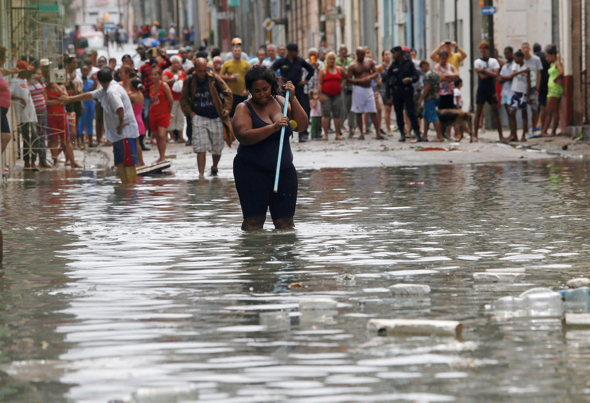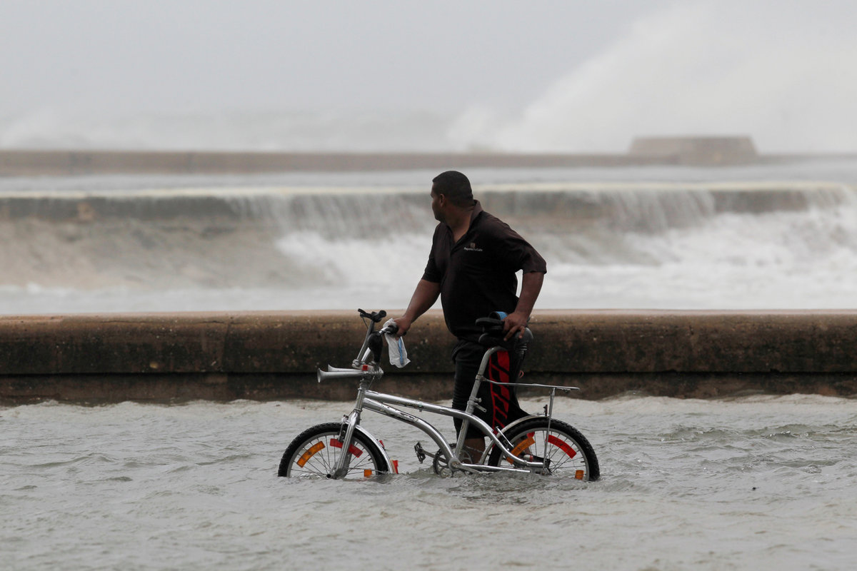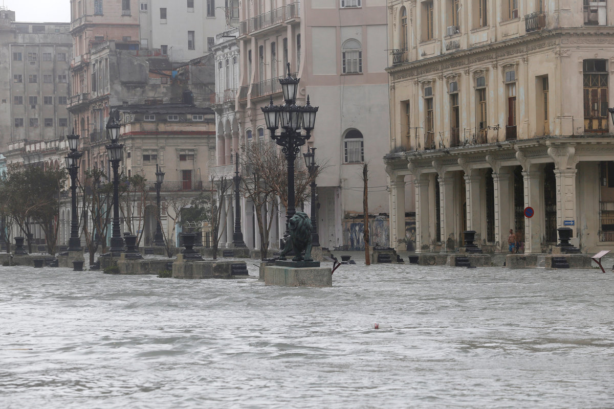 Sea-front hotels were evacuated in Havana and relief workers spent the night rescuing people from homes in the city center as the sea penetrated to historic depths in the flood-prone area.