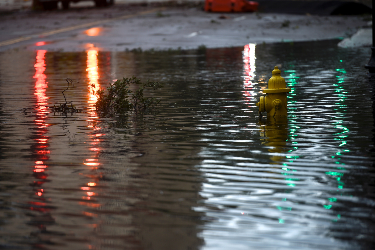 Lights are reflected beside a submerged water hydrant in floodwaters after Hurricane Irma in Jacksonville, Florida U.S. September 11, 2017. REUTERS/Mark Makela