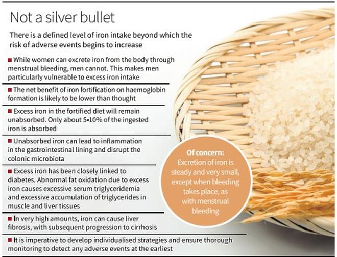 Even though iron fortification has been successful in addressing iron deficiency, it is important to consider the dangers of consuming too much iron. Rather than adopting mandatory iron fortification programmes where unsupervised high iron intakes are instituted across a diverse population, it is imperative to develop individualised strategies and ensure thorough monitoring to detect any adverse events at the earliest. There is no doubt that some segments of the population need the extra dietary iron but not all.