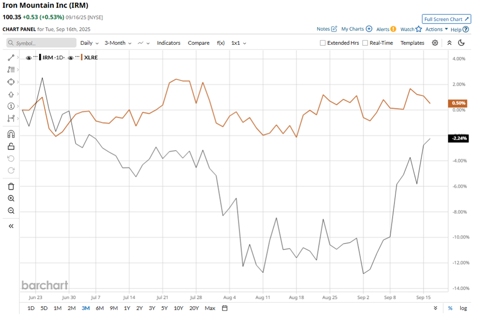 Despite this, shares of the Boston, Massachusetts-based company have dipped nearly 23% from its 52-week high of $130.24. IRM stock has decreased 1.7% over the past three months, lagging behind the Real Estate Select Sector SPDR Fund’s (XLRE) over 1% rise during the same period.