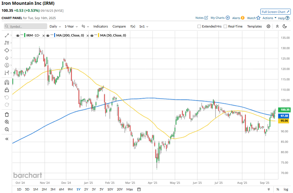 Despite recent fluctuations, IRM stock has been trading below its 200-day moving average since early February.