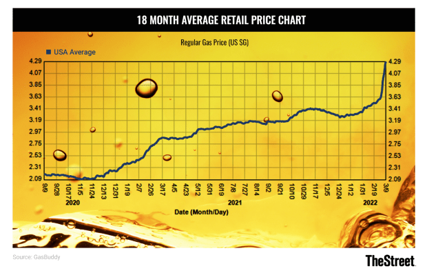 Today's national average gas price is $4.25 per gallon according to AAA. Considering that only a month ago it was $3.46, that's a steep jump, and it could keep rising.