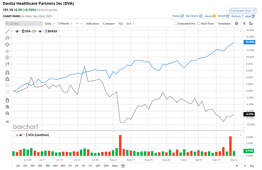 DVA has also lagged behind its rival, Fresenius Medical Care AG (FMS), which soared 26.7% over the past 52 weeks and 13.5% on a YTD basis.