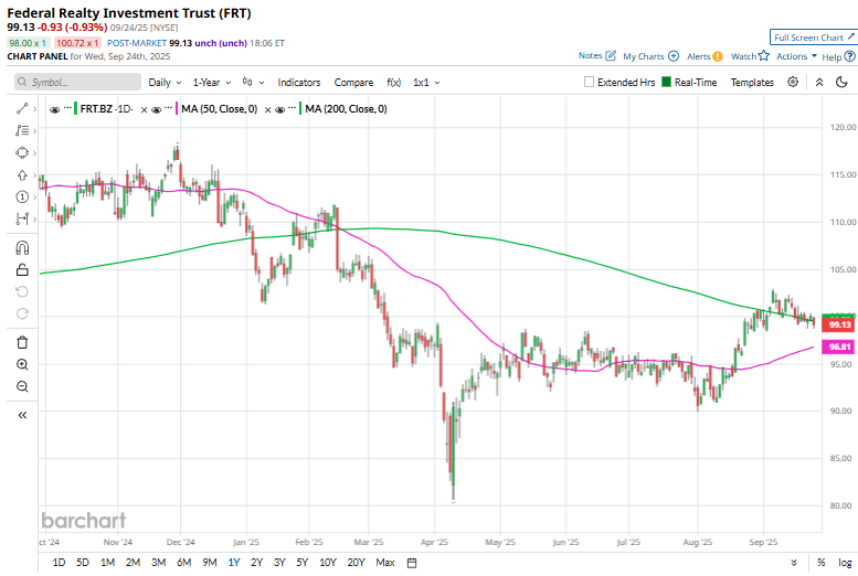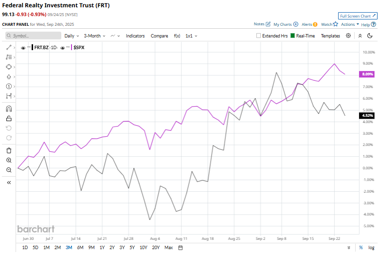 Despite the feat, shares of FRT have retreated 16.1% from its 52-week high of $118.09 recorded on Nov. 29. FRT stock has surged 3% over the past three months, underperforming the S&P 500 Index ($SPX), which has returned 9% over the same time frame.