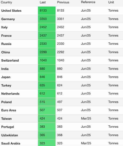 Meanwhile, according to the latest statistics, the United States holds the largest gold reserves.