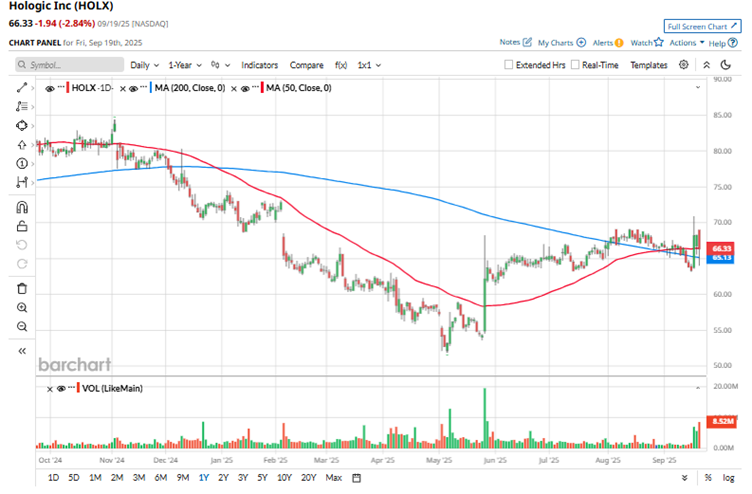 Hologic’s stock had reached a 52-week low of $51.90 in May 2025, but it is up 27.8% from this low. Based on a better-than-expected third-quarter earnings report, the stock is up by 3.7% over the past three months. However, the broader S&P 500 Index ($SPX) has outperformed the stock over the same period, gaining 11.4%.