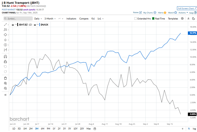 Despite its strengths, the stock has dipped 33.9% from its 52-week high of $200.40 touched on Nov. 11, 2024. Moreover, over the past three months, JBHT stock has declined 4.7%, underperforming the broader Nasdaq Composite’s ($NASX) 15.8% rise over the same time frame.