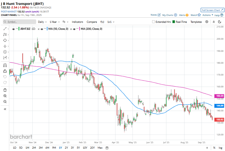 JBHT stock has been trading below its 200-day moving average since mid-February and has dipped under its 50-day moving average since the end of July, indicating a bearish trend.