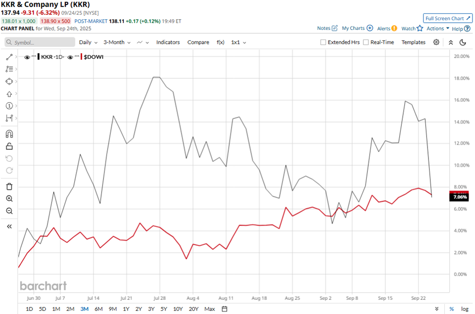 Longer term, KKR stock is down 6.7% on a YTD basis, lagging behind DOWI's 8.4% gain. Moreover, shares of the company have risen 4.2% over the past 52 weeks, compared to DOWI’s 9.3% increase over the same time frame.