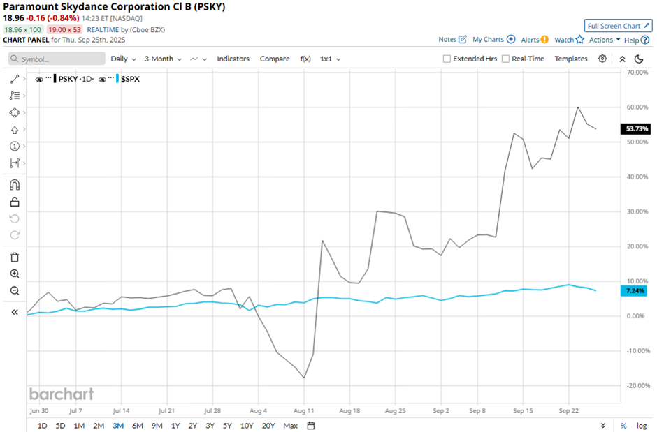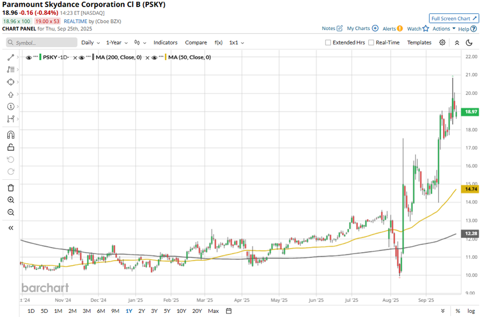 Shares of the New York-based company have fallen over 9% from its 52-week high of $20.86. Paramount Skydance’s shares have climbed 55.3% over the past three months, exceeding the broader S&P 500 Index’s ($SPX) 8.2% gain over the same time frame.