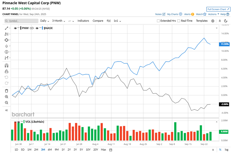 Despite its notable strength, PNW slipped 9.7% from its 52-week high of $96.50, achieved on Apr. 3. Over the past three months, PNW stock declined 3.4%, underperforming the Nasdaq Composite’s ($NASX) 13% gains during the same time frame.