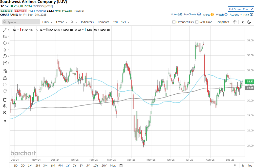 When compared to its peer, Southwest’s performance appears abysmal compared to United Airlines Holdings, Inc.’s (UAL) 9.5% gains in 2025 and 102.2% surge over the past 52 weeks.