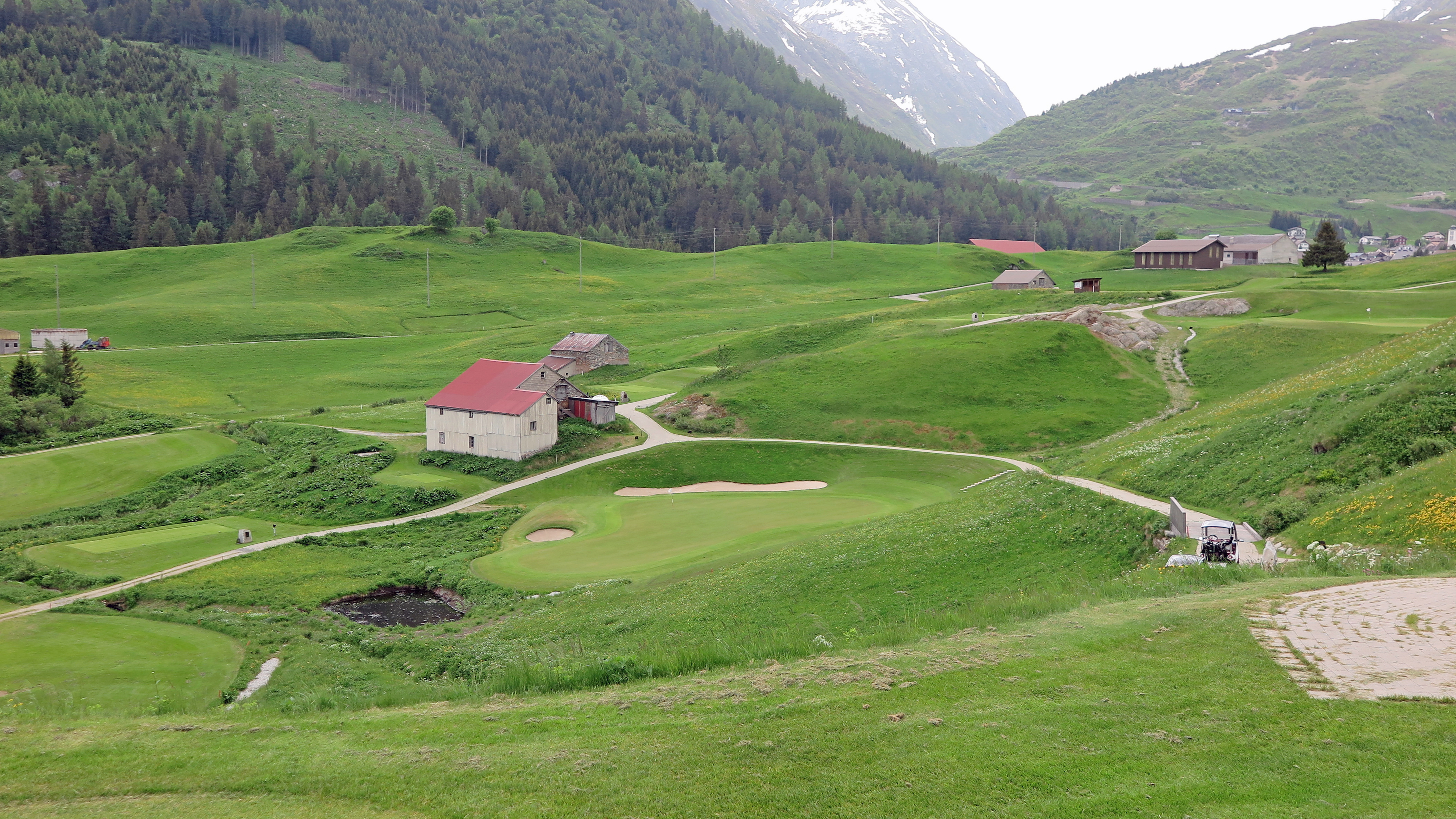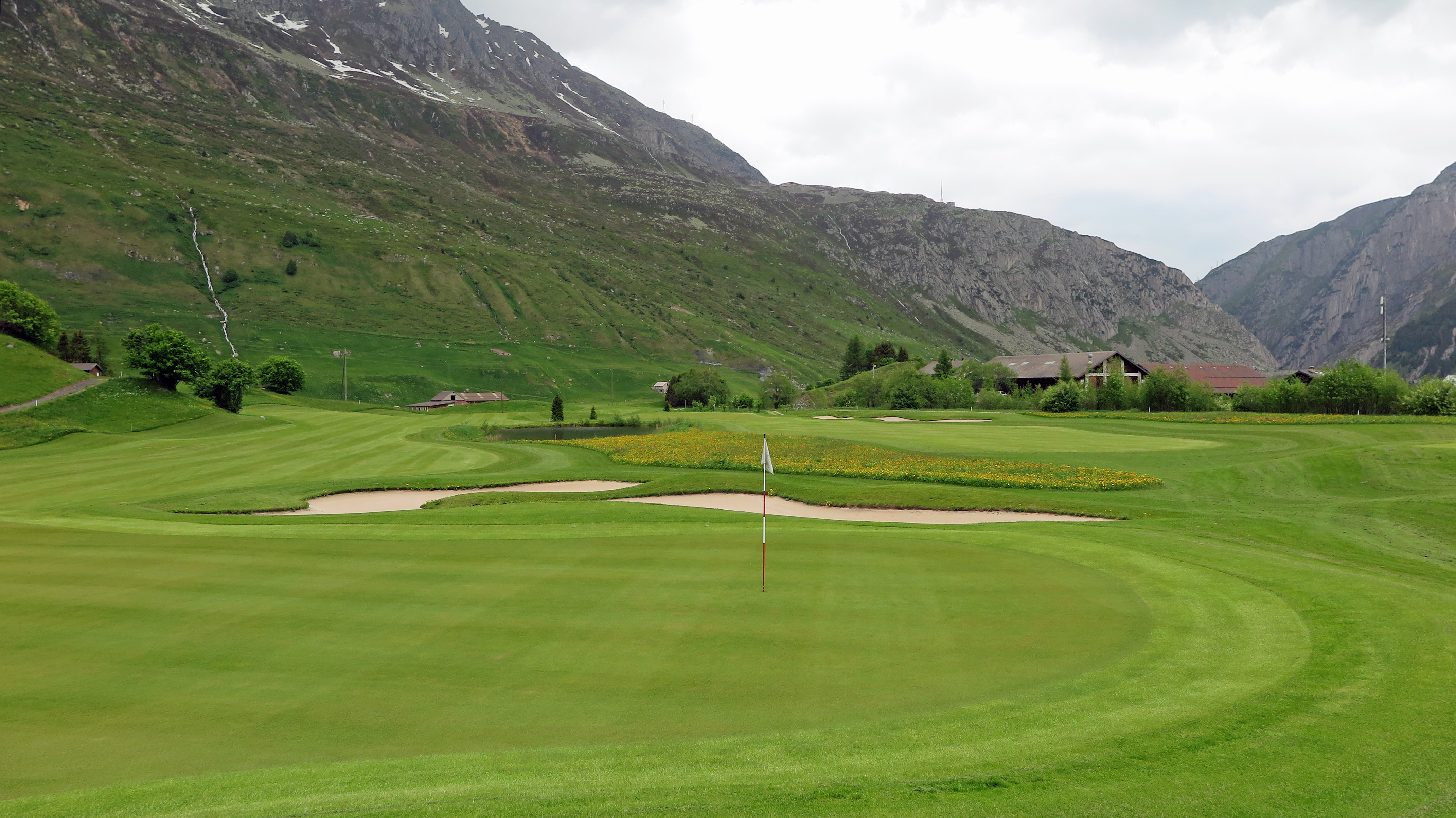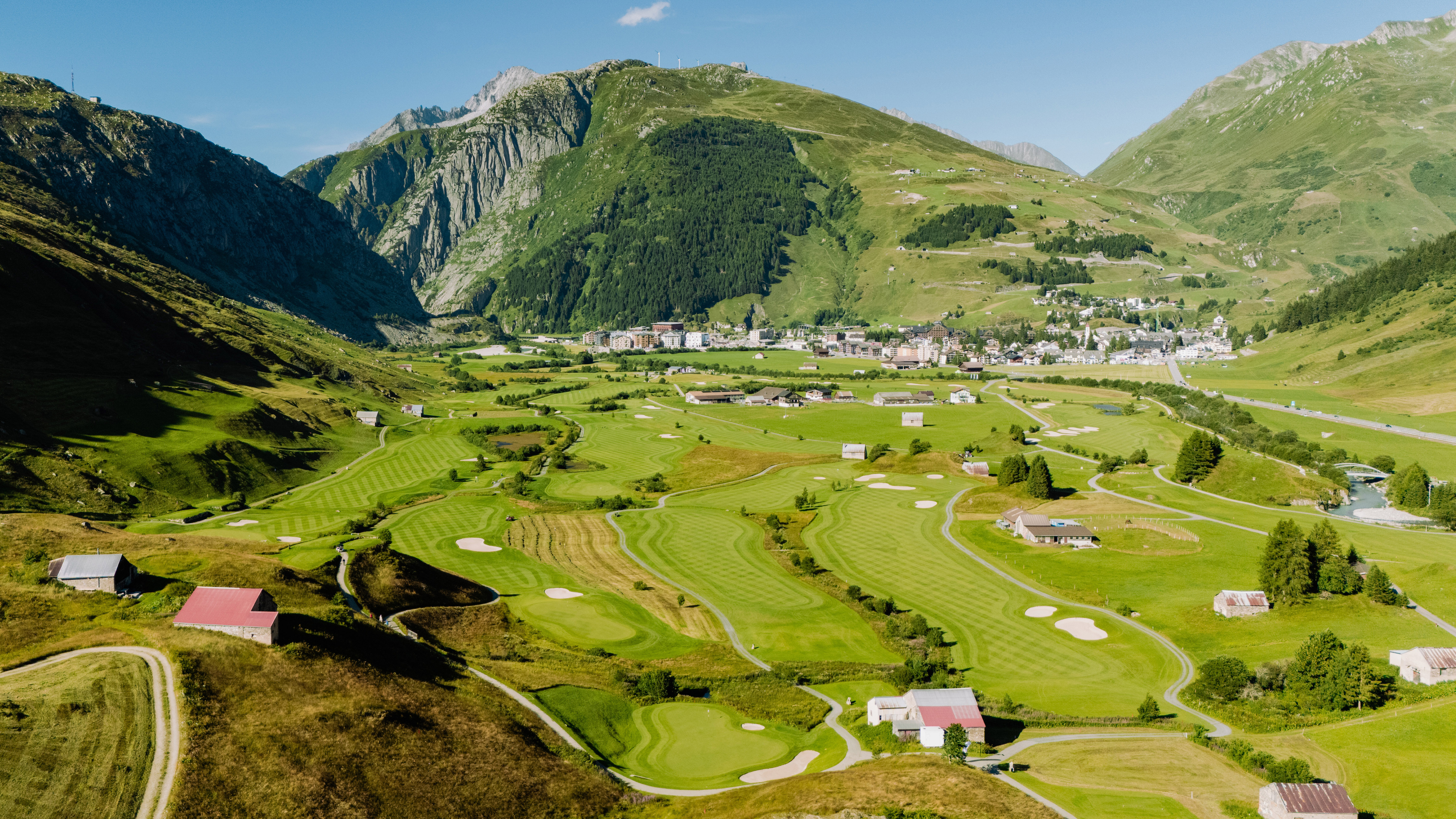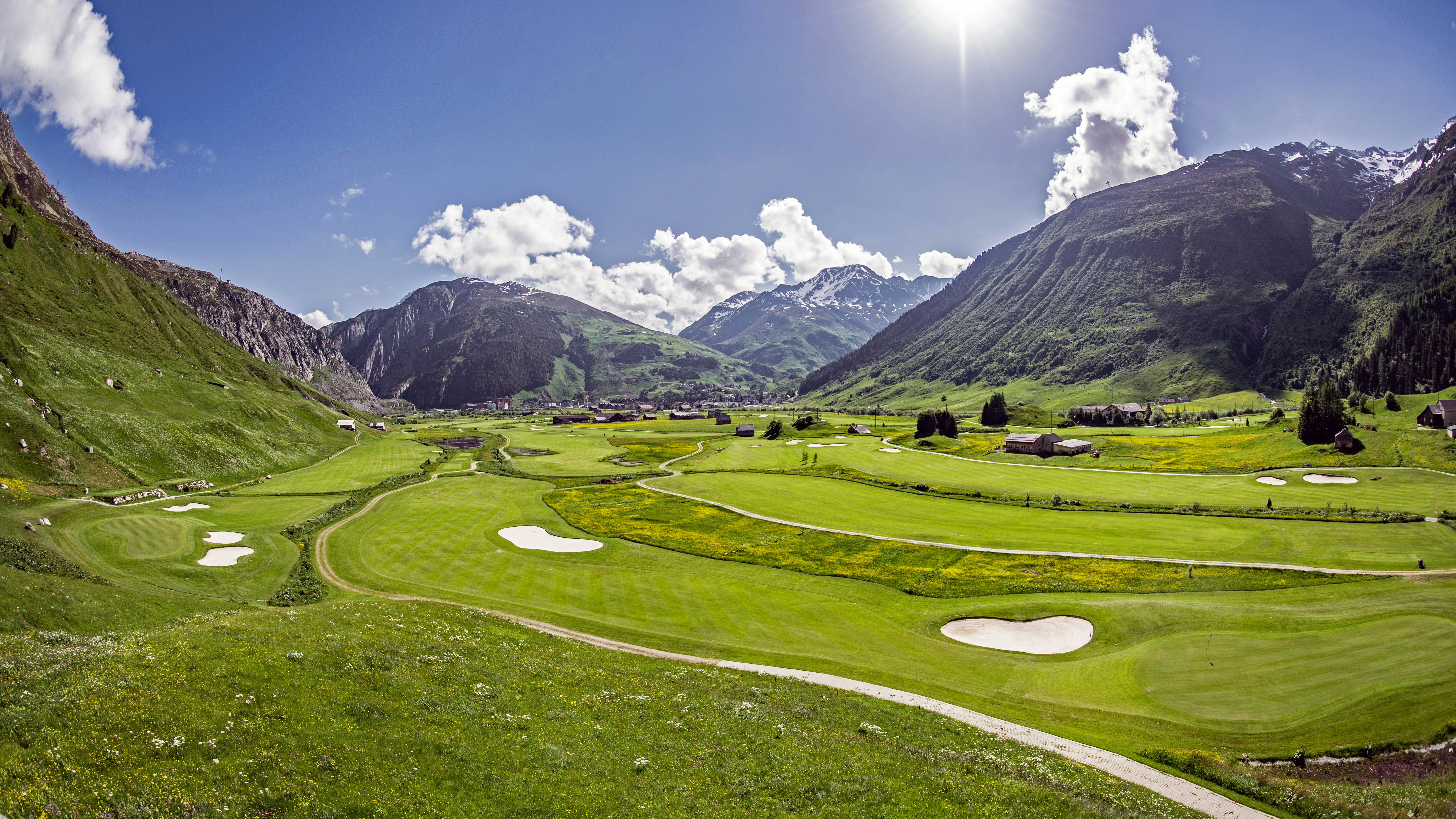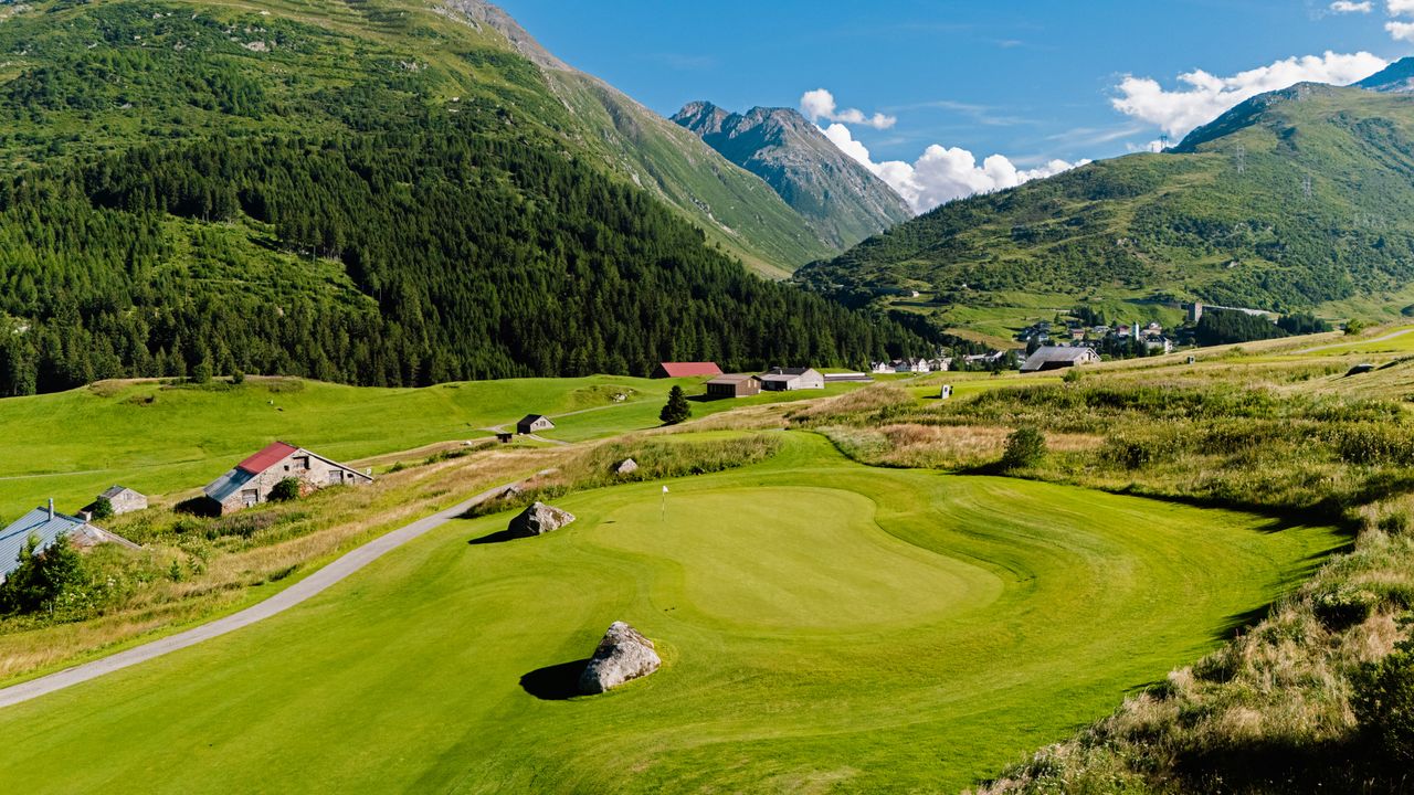 Despite its great natural beauty, Switzerland is not yet on the travelling golfer’s radar. Its best-known course is perhaps Crans-Sur-Sierre, host of the Omega European Masters, won last Summer by Thriston Lawrence. But there are many stunning courses, especially for those seeking somewhere new, different, and exceptionally beautiful. Andermatt is a prestigious ski resort set at a little under 5,000 feet above sea level. It is south of Zurich at the end of a scenic road trip via Lake Lucerne, and its exceptional course sits perfectly in the lush, green Ursern Valley in the Alpine foothills.