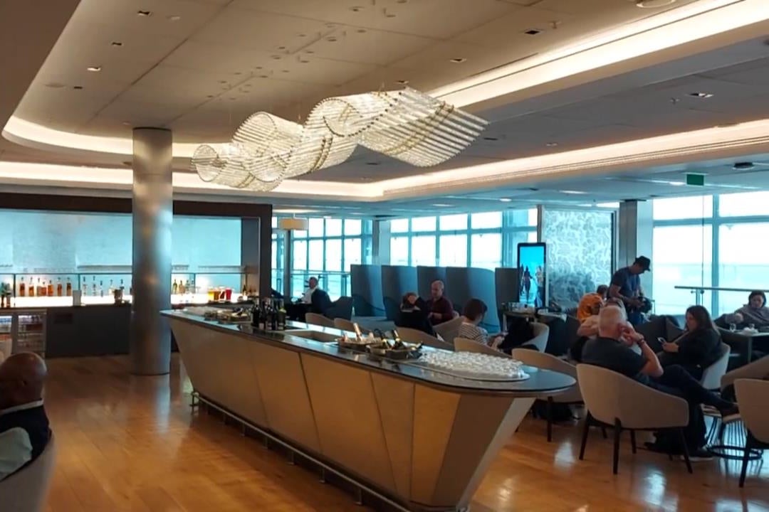 A glance at the time and I can see that boarding will begin in 40 minutes, which only gives me 20 minutes or so to take in the space’s temptations. This is long enough to note the enticing array of seats, from blue-hued booths to chic chairs, and the generous buffet of hot and cold food. Plus, there are panoramic views of the airfield through floor-to-ceiling windows.