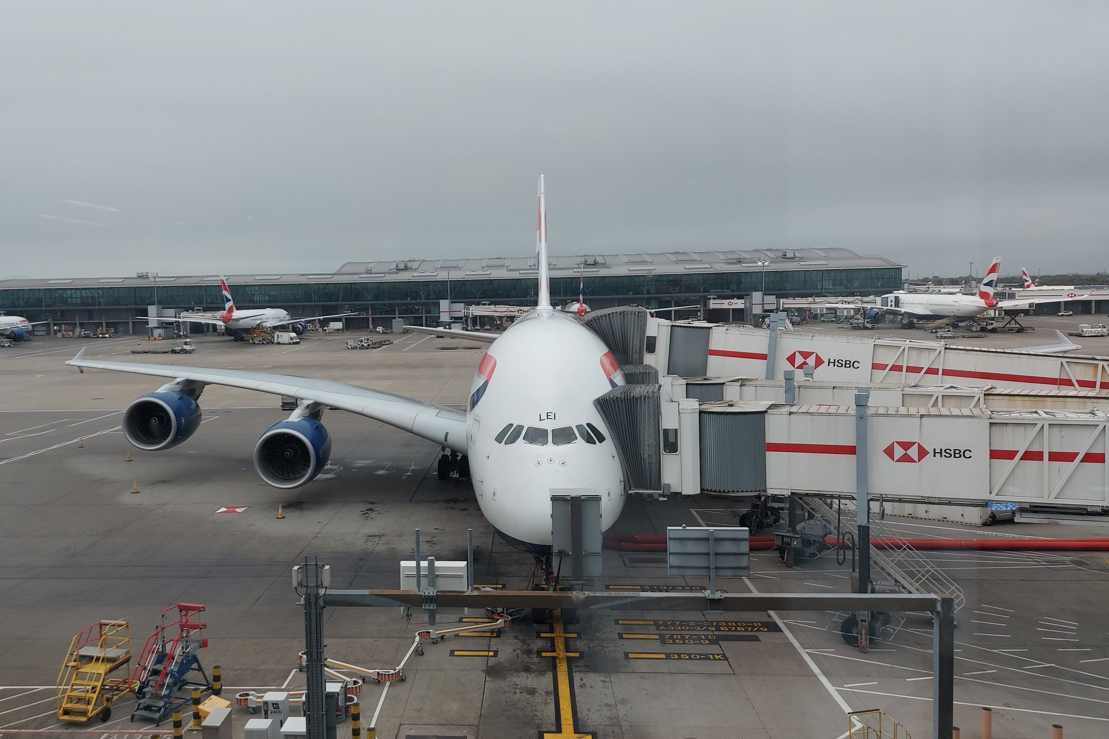 The super-jumbo is a sight to behold and there are three in BA’s distinctive red, white and blue livery lined up at the C departure wing when I arrive.