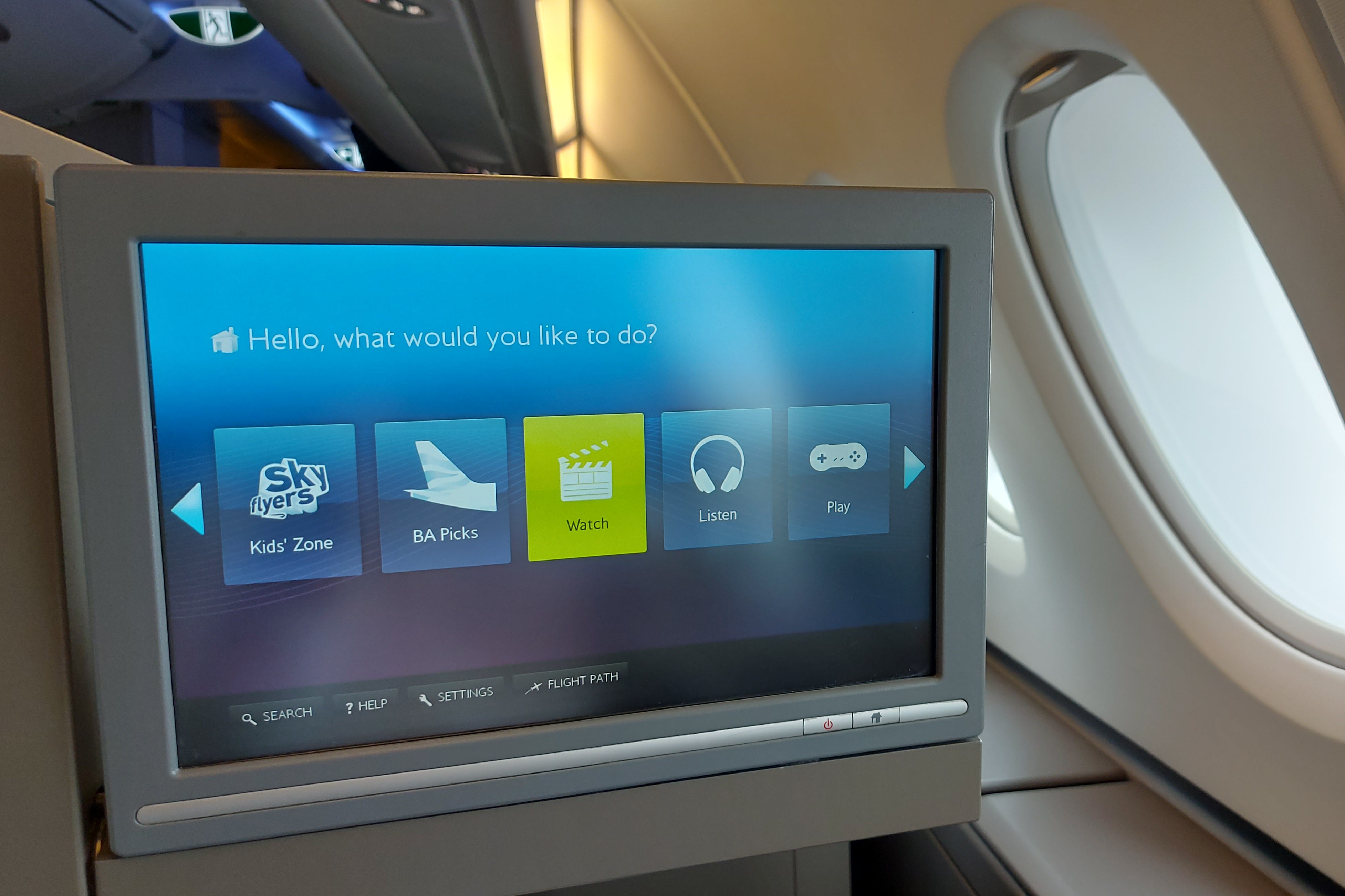 The screen measures just 12.1 inches, smaller than some premium economy screens on competitor airlines (United, for instance). But it’s noticeably bigger than BA’s A380 premium economy (10.6 inches) and economy (8.9 inches) screens and fairly crisp and responsive.