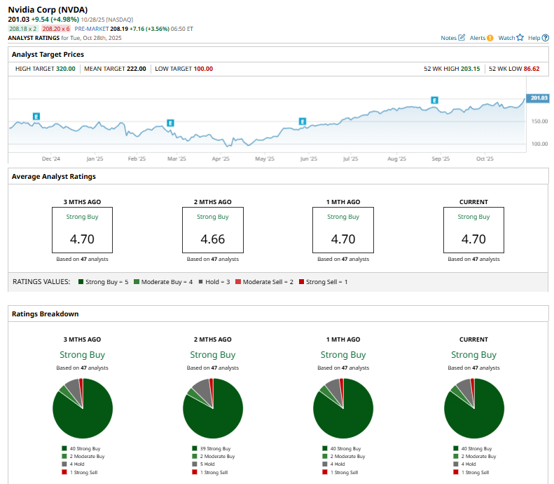 On Oct. 15, HSBC upgraded NVIDIA to “Buy” from Hold, highlighting expectations that the AI GPU market will expand beyond hyperscalers and drive sustained earnings growth. The firm also raised its price target to $320 from $200, which is also the Street-high target, suggesting an ambitious upside potential of 59%.
