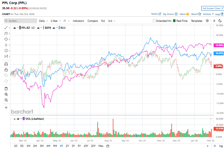 Shares of this leading utility company have underperformed the broader market over the past year. PPL has gained 5% over this time frame, while the broader S&P 500 Index ($SPX) has rallied 15.4%. In 2026, however, PPL’s stock is up 1.4%, surpassing SPX’s 1.1% rise on a YTD basis.