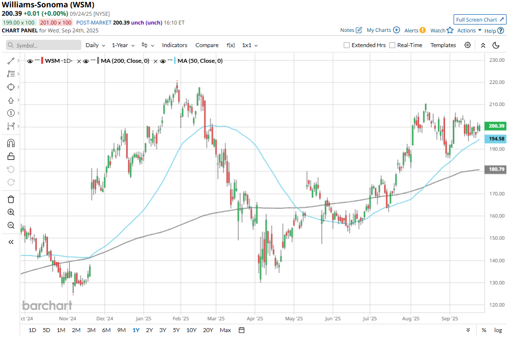 Further, WSM stock has traded above its 50-day moving average since mid-May and above its 200-day moving average since July, with some fluctuations, underscoring its bullish trend.