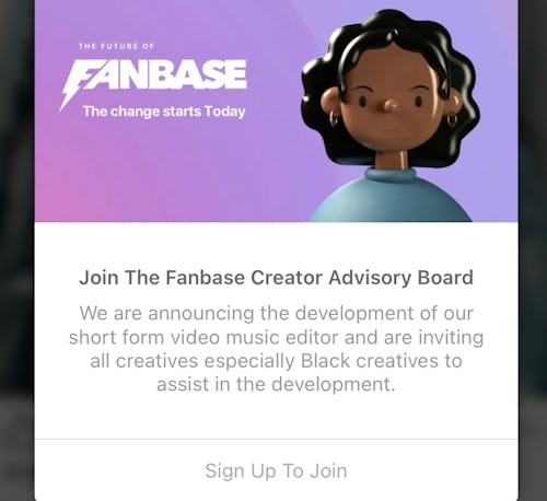 The company is also developing an upcoming music video editor, putting it in direct competition with TikTok. Before they roll out their TikTok competitor, Hayes III says Fanbase is launching a creator advisory board in response to kids being “shadow banned and blocked on TikTok because of their color or sexual preference or things they’re saying.” When you open the app, it invites you to sign up and join the advisory board, but makes a point to mention the app is especially interested in having Black creatives part of the board. Hayes III tells Mic that Fanbase isn't a Black-only social media platform, but that it aims to empower Black creatives by removing the racist roadblocks that have caused other platforms to curtail creators' potential.