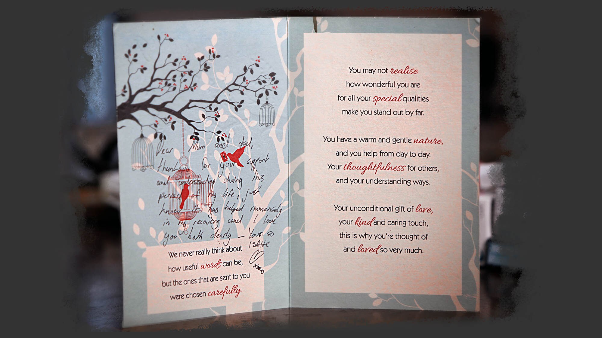 "Thank you for your support and understanding during this period of my life, just know it has helped immensely in my recovery and I love you both dearly — Your son Isaac xxxo."