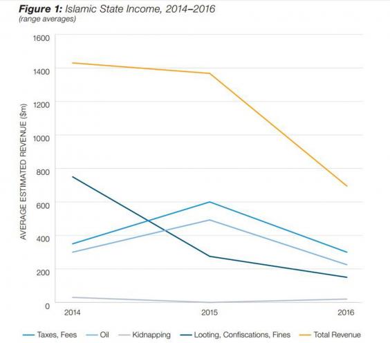 Estimated earnings from the looting and confiscation of artefacts from historical sites and abandoned homes across Isis territory is also on the decline.