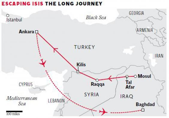 The former taxi driver said he had wanted to leave Mosul earlier but stayed to look after a sick relative. He then heard that a friend of a friend had a relative in Isis who was taking money on the side to get people out. He paid just under $1,000 (£645), putting himself in the hands of a chain of smugglers, with little idea of where he would be taken. As a member of Isis, his smuggler could easily navigate checkpoints. A group of about 11 were smuggled to Turkey, through Raqqa, the Isis stronghold in Syria.