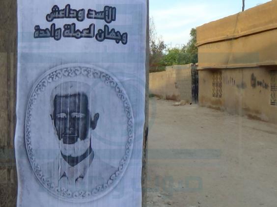 Some slogans simply call for the downfall of Isis. Others warn that Assad and Isis are “two sides of the same coin”. One poster depicts the Syrian president with an Islamic beard. Another portrays his regime and that of Isis as the two claws of a wrench that is crushing the Syrian people.