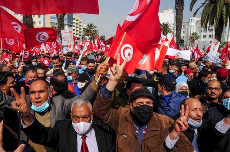 The demonstration follows political tensions between Tunisia's president and its prime minister, Hichem Mechichi. Mechichi has sought to reshuffle his Cabinet but has seen some of his proposed ministerial appointments blocked by President Kais Saied.
