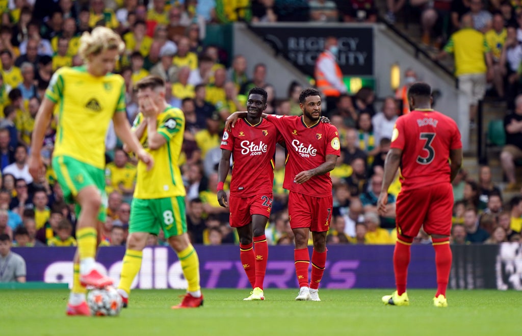 Ismaila Sarr struck twice as Norwich’s losing start to the Premier League season extended to five games following a 3-1 defeat to Watford at Carrow Road.